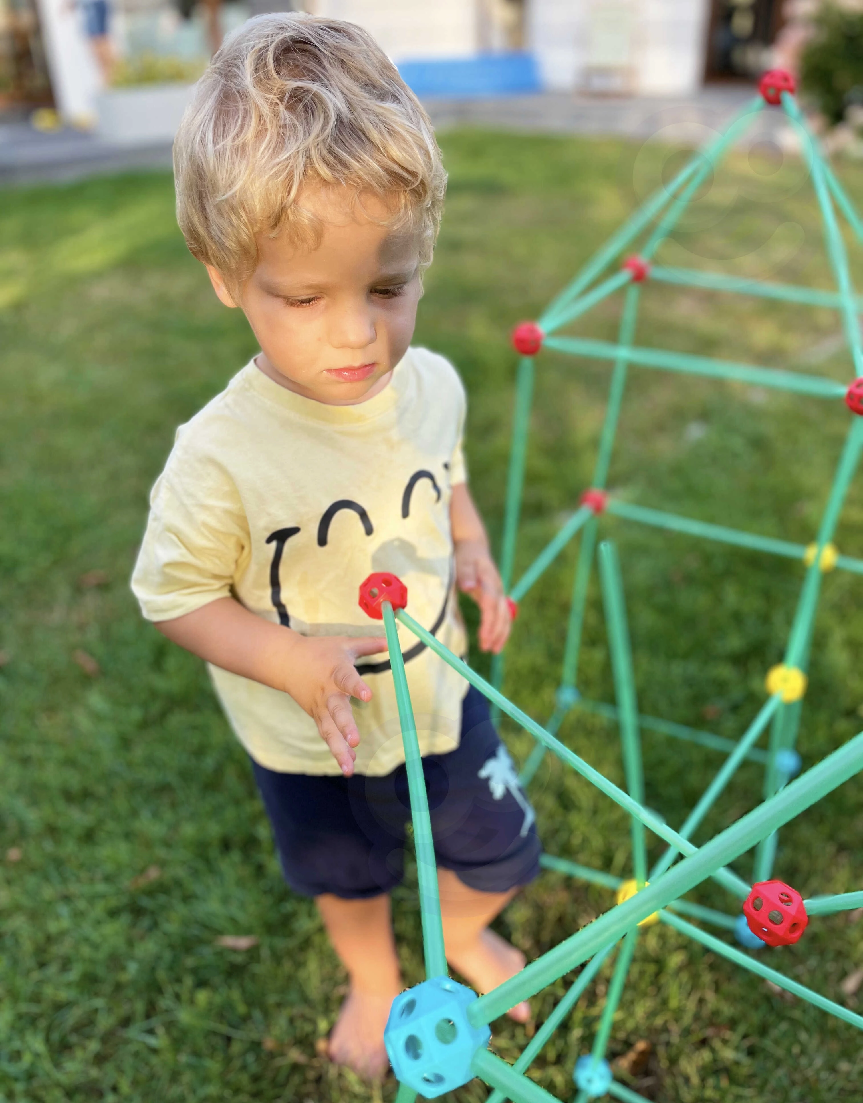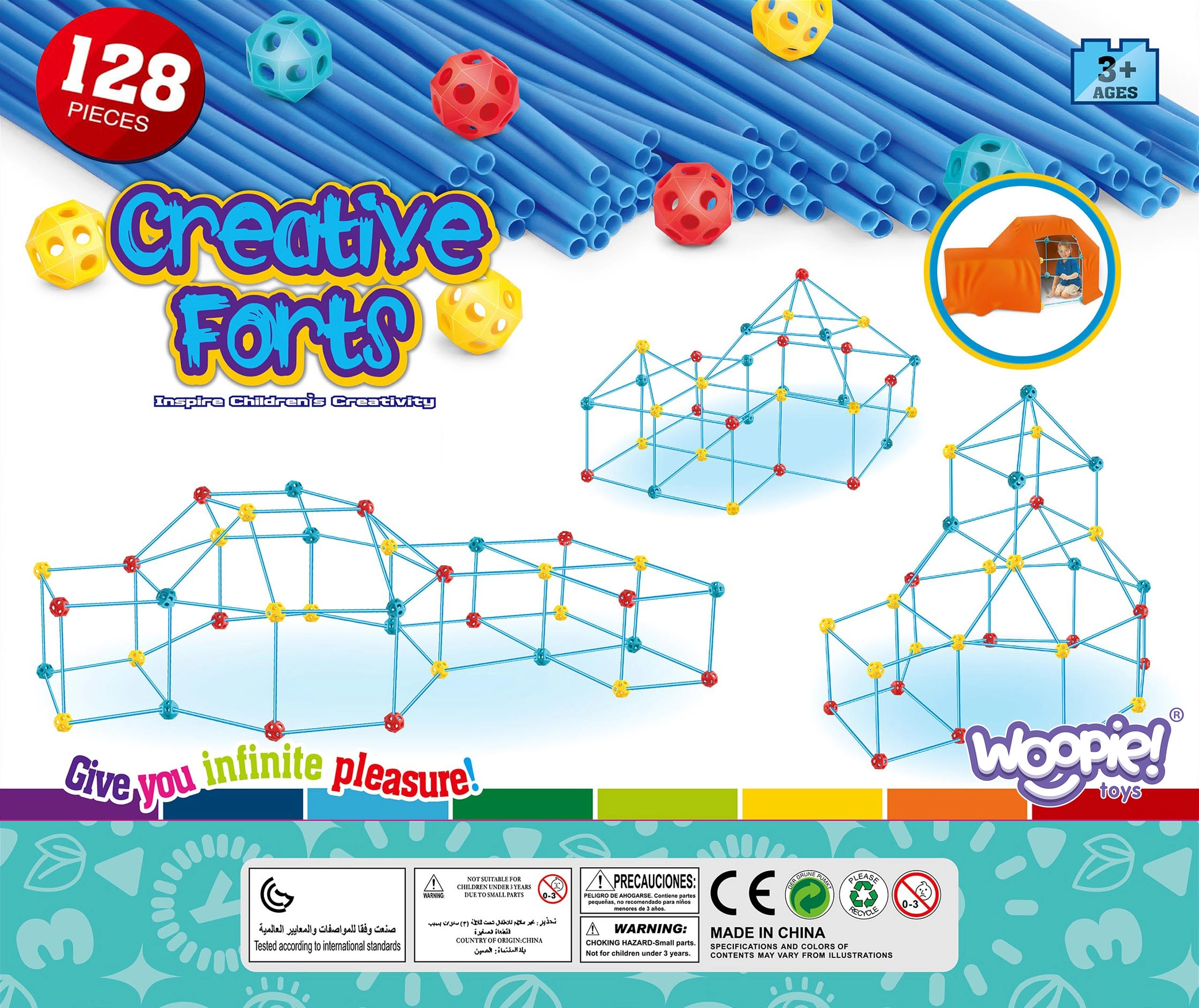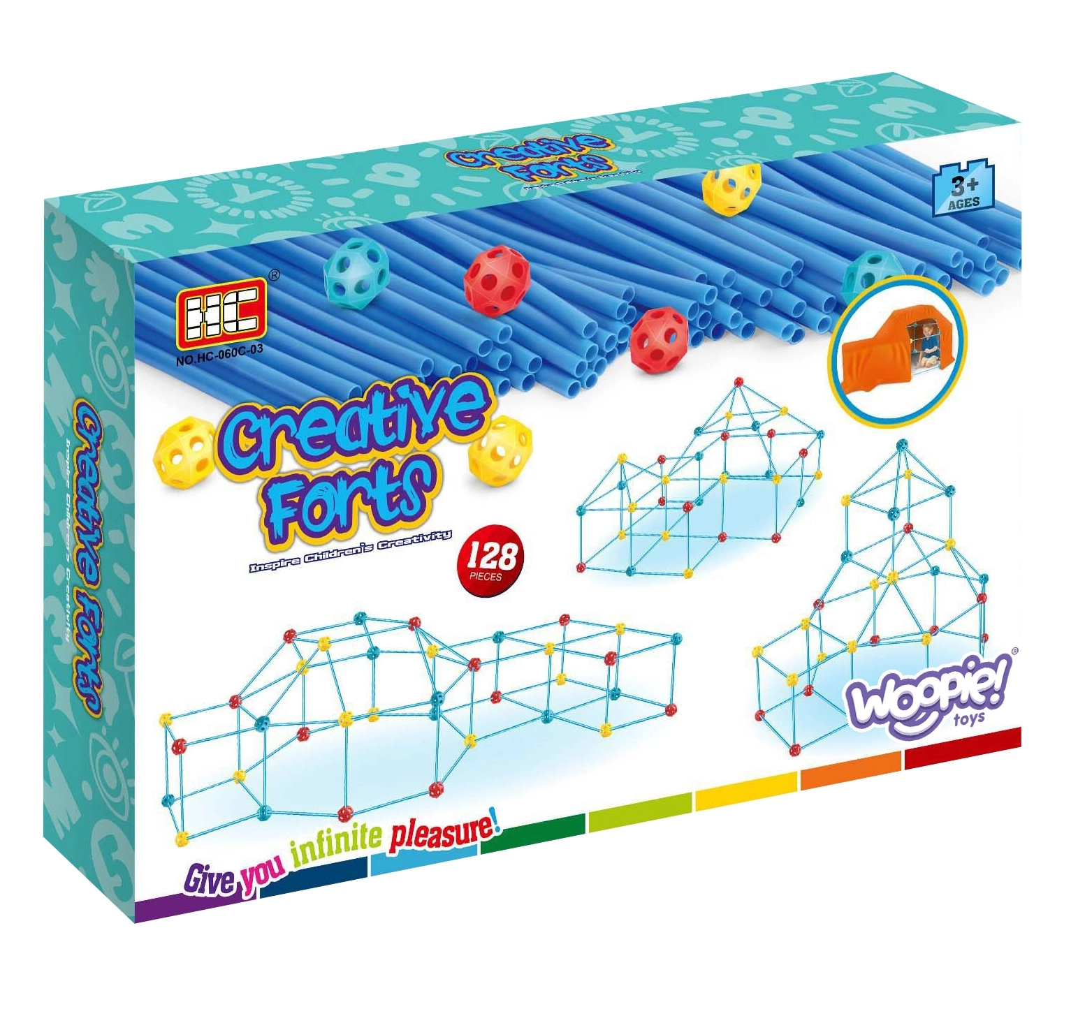 Konstrukcinis rinkinys iš prekės ženklo WOOPIE pažadins jūsų vaikui tikrą statytoją! Rinkinyje yra 128 elementai, įskaitant šiaudelius, jungiamuosius vamzdelius ir medžiagą konstrukcijai uždengti. Leidžia kurti erdvines konstrukcijas, pavyzdžiui, palapinę, kurią galite uždengti audiniu. Puikiai tinka kūrybiškam žaidimui namuose ir lauke.