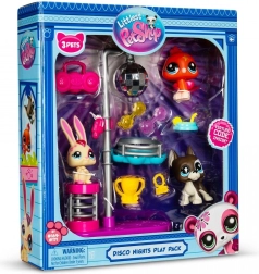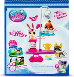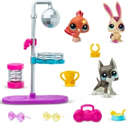 Ženkite į LITTLES PET SHOP pasaulį ir mėgaukitės disko atmosfera! Šis žaismingas rinkinys pristato tris šokančius augintinius, pasiruošusius spindėti po disko sferos šviesomis. Besisukančios platformos leidžia jiems suktis ir demonstruoti geriausius judesius, o stilingi aksesuarai pabrėžia jų asmenybę.