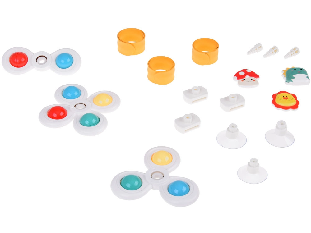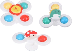 Dėl specialių sukamųjų žiedų suktukas lavina vaiko smulkiąją motoriką ir suteikia begalinį pramogų laiką. Rinkinyje yra 3 vienetai, kiekvienas su savo siurbtuku ir dirželiu, ir jie suteikia spalvingų bei linksmų akimirkų.