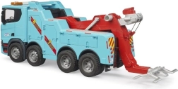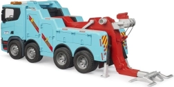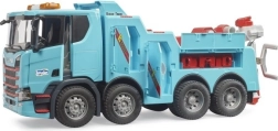 Tvirtas BRUDER gelbėjimo ir vilkimo sunkvežimis su SCANIA SUPER 560R važiuokle ištikimai atkuria tikras specialiąsias transporto priemones. Dėl detaliai suprojektuotos kabinos su atidaromomis durimis ir gaubtu, veikiančios gervės ir ištraukiamos strėlės su kabliu vaikai patirs autentišką gelbėjimo operaciją kelyje.