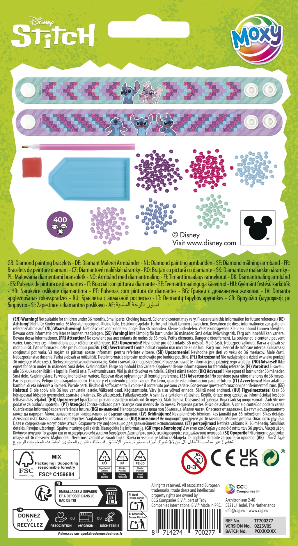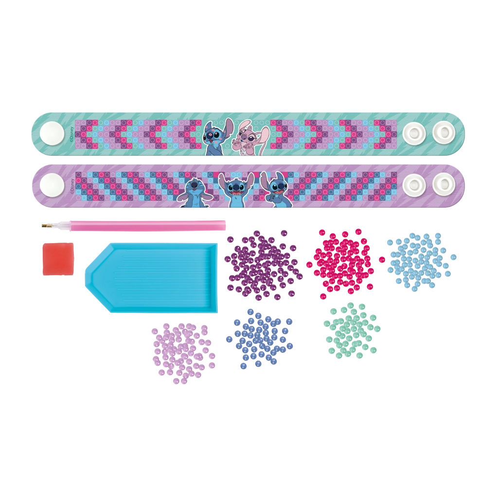 Susikurkite savo ryškias apyrankes su Stičo motyvu pasitelkdami deimantinės tapybos techniką. Ši kūrybinė rinkinio sudėtis apima viską, ko reikia dviem originalioms apyrankėms papuošti blizgančiais akmenėliais.