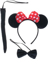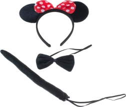 Mielas persirengimo rinkinys akimirksniu pavers kiekvieną vaiką žavia pelyte. Komplekte lankelis su ausytėmis ir raudonu taškuotu kaspinu, juodas varlytės kaklaraištis ir minkšta uodega. Puikus pasirinkimas karnavalui, Helovinui ir teminiams vakarėliams – universalaus dydžio, patogus dėvėti ir patvarus tekstilinis atlikimas.