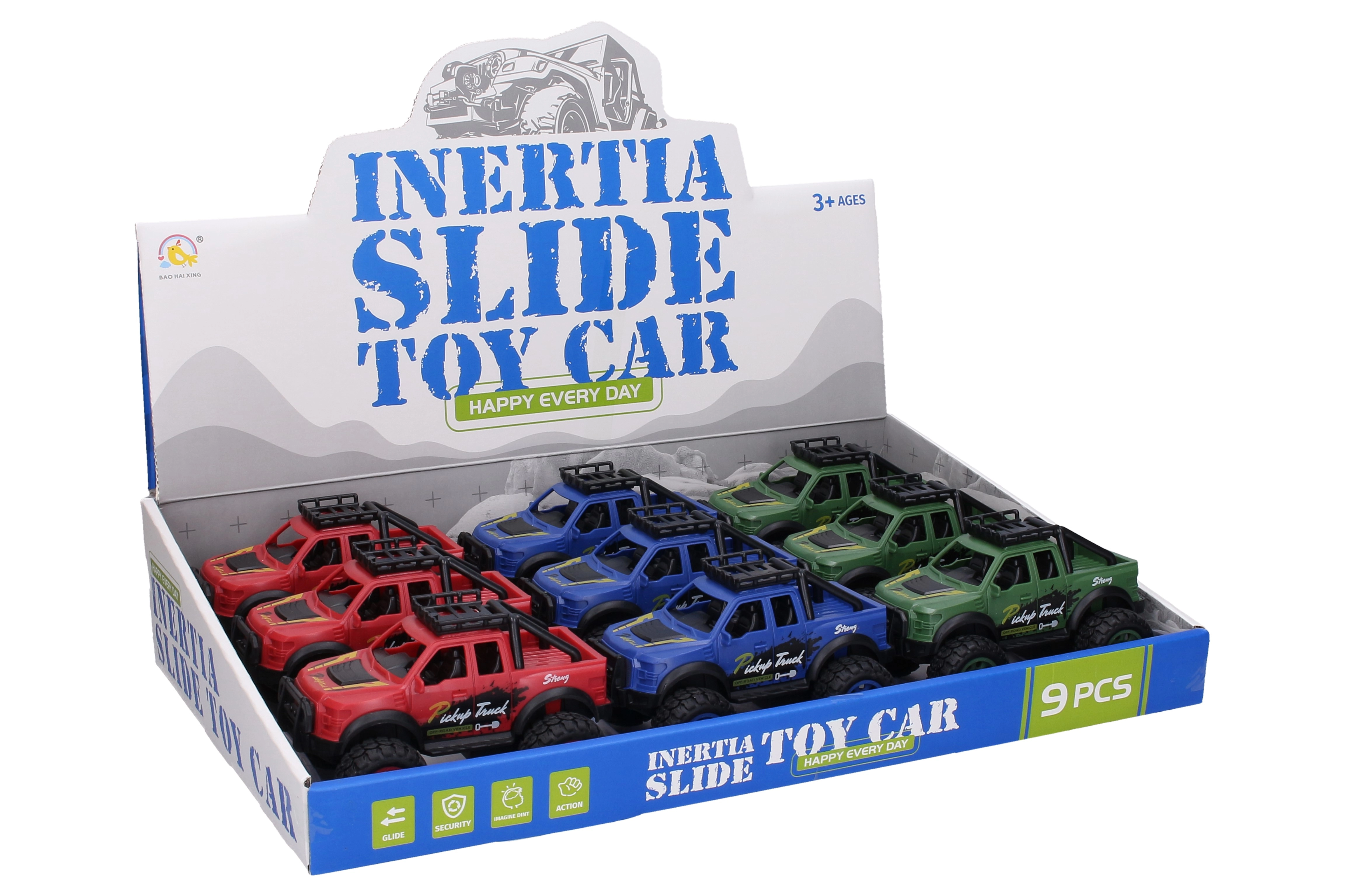 Inercinis visureigis, 13 cm ilgio, yra ideali žaislinė transporto priemonė kiekvienam mažam lenktynininkui. Galimas trijų patrauklių spalvų: raudonos, mėlynos ir žalios.
