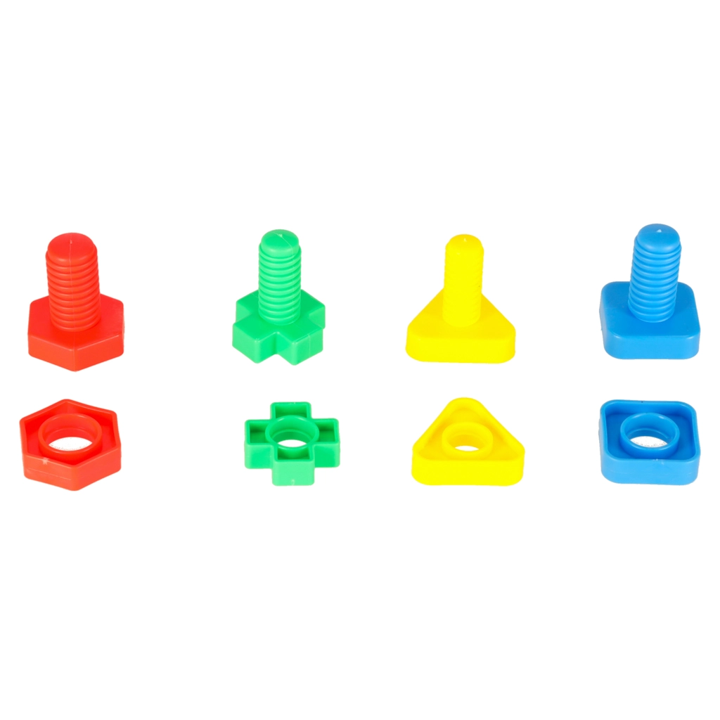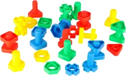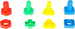 Atskiri varžtai ir veržlės turi skirtingas formas, kurias reikia teisingai suporuoti. Dėl paprasto principo rinkinys tinka priešmokyklinukams ir puikiai ugdo erdvinį mąstymą bei kantrybę.