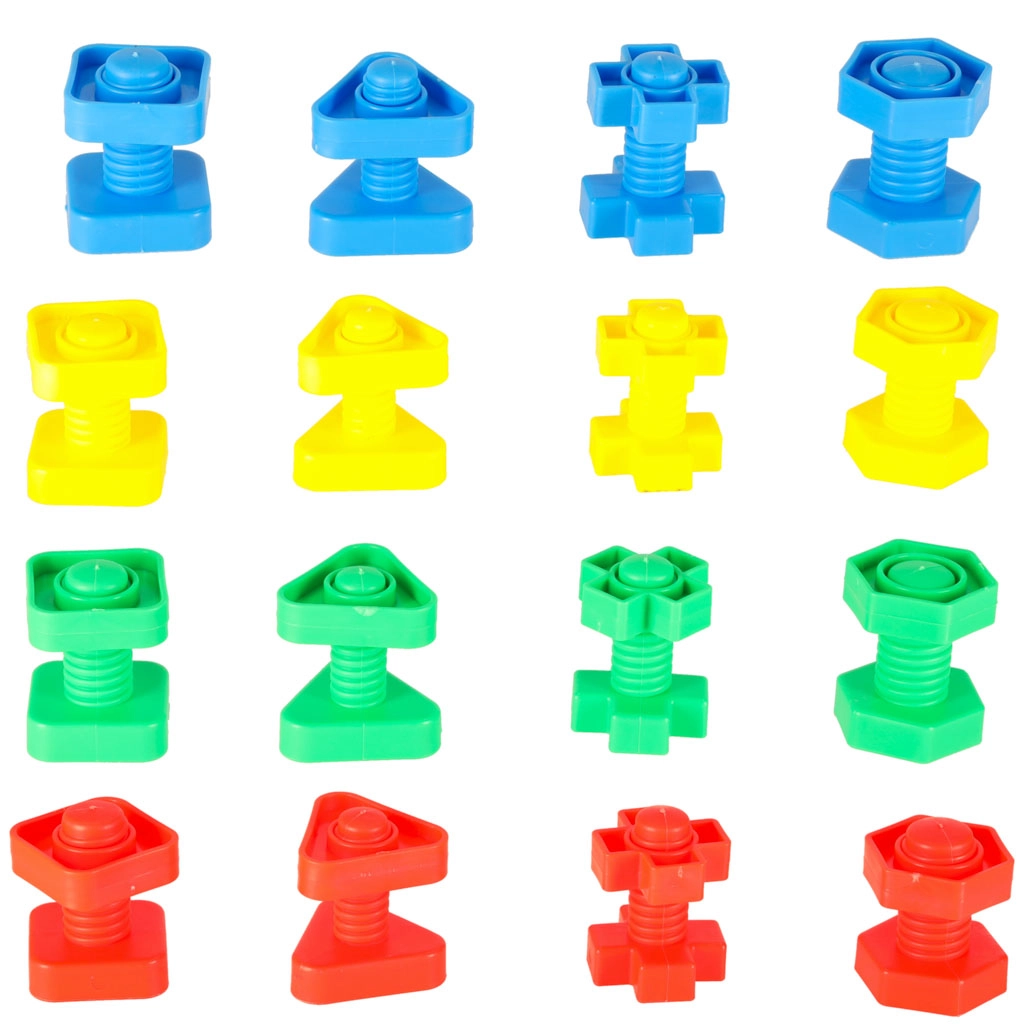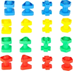 Spalvinga Montessori konstravimo rinktinė varžtų ir veržlių formos lavina smulkiąją motoriką, loginį mąstymą ir akių–rankų koordinaciją. Vaikai mokosi atpažinti formas ir spalvas atlikdami užduotį prisukti tinkamą varžtą prie atitinkamos veržlės. Rinkinyje yra 30 dalių ryškių spalvų, kurios skatina žaisti ir mokytis.