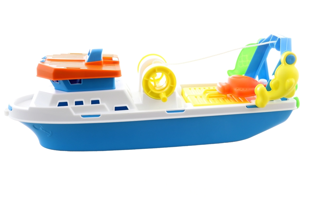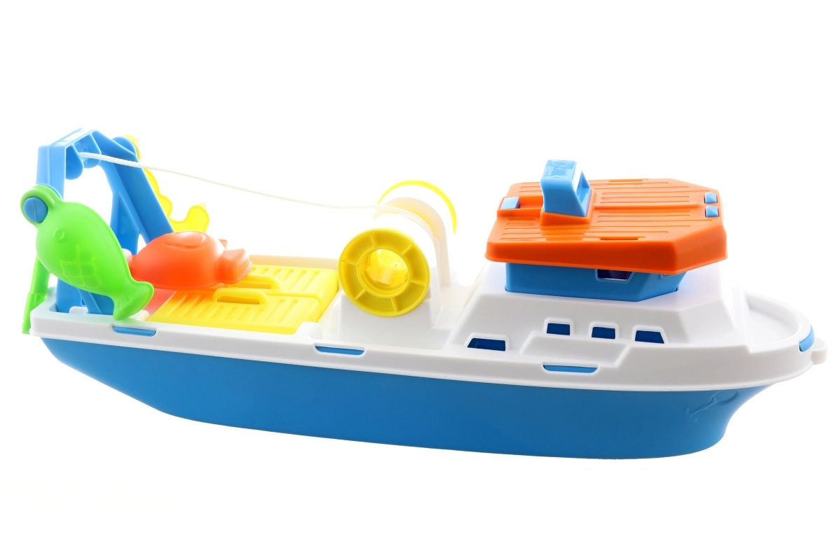 Atraskite žvejybos žavesį su šiuo erdviu 40 cm dydžio plastikiniu žvejybiniu laivu. Idealu vaikams nuo 3 metų, skatina vaikų vaizduotę.