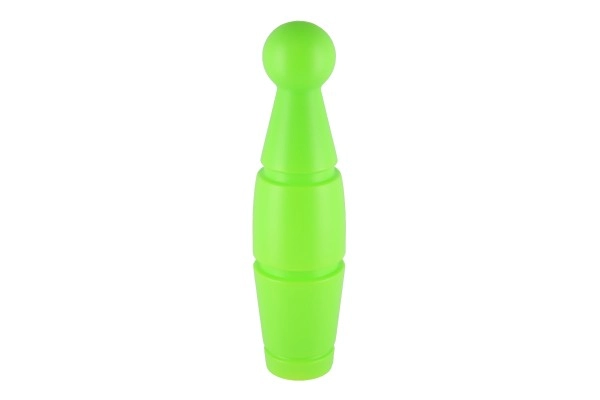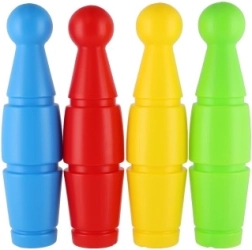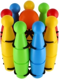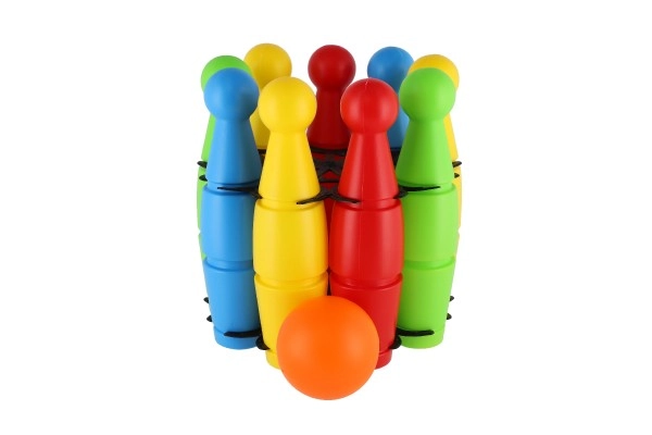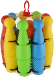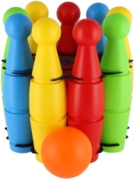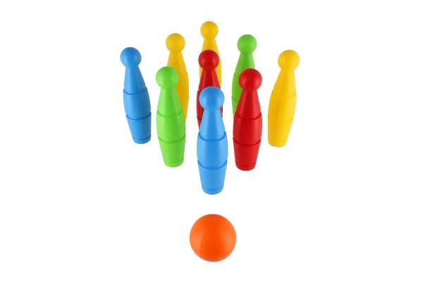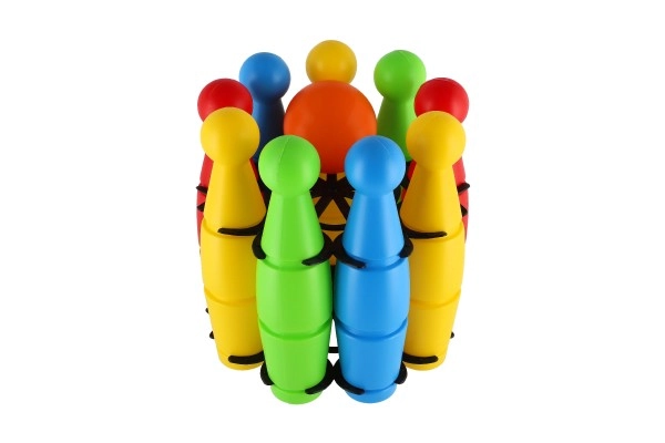 Linksmas rinkinys mažiesiems boulingo žaidėjams sudarytas iš 9 spalvotų plastikinių kuželių ir plastikinio kamuolio. Lengvas ir saugus žaislas namams ir kiemui padeda lavinti smulkiąją motoriką, sutelktumą, taiklumą ir sąžiningą žaidimą (fair play). Kuželių aukštis 24 cm, visas rinkinys patogiai supakuotas į tinklelį.