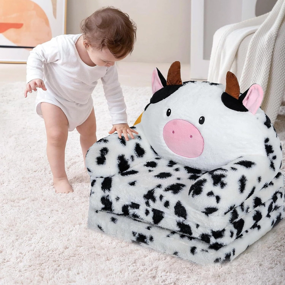 Žavus dizainas su būdingomis juodai baltomis dėmėmis, draugišku veideliu, rožine nosyte, iškiliomis ausimis ir minkštais rageliais akimirksniu patraukia vaikų dėmesį ir suteikia interjerui linksmą bei jaukią atmosferą. Karvės kailio motyvas puikiai dera su vaikų kambario dekoru ir tampa funkcionaliu jo akcentu.