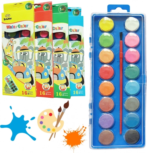 Mokyklinių akvarelinių dažų rinkinys idealiai tinka vaikams, kurie tik mokosi piešti, ir tiems, kurie jau lavina savo meninius gebėjimus. Ši pakuotė turi 16 intensyvių spalvų, kurias patogu naudoti dėl plastikinės paletės su skaidriu dangteliu.