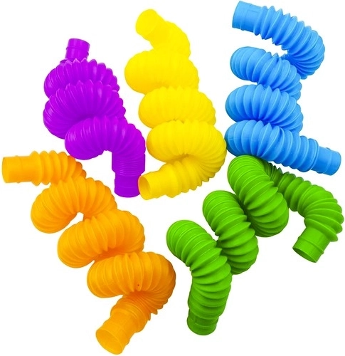Šis 10 sensorinių vamzdelių rinkinys sukurtas lytėjimo ir klausos stimulacijai. Vamzdeliai, prieinami 7 skirtingų spalvų – geltona, rožinė, violetinė, oranžinė, mėlyna, tamsiai mėlyna ir žalia, yra idealūs edukaciniams žaidimams, pavyzdžiui, raidžių mokymuisi, skaičiavimui ir kt. Jų jungimo galimybė leidžia kurti įvairias formas, tokias kaip apskritimai ir kvadratai, kas skatina vaikų kūrybiškumą ir suteikia valandų valandas pramogų. Suaugusiesiems jie tarnauja kaip puiki priemonė stresui mažinti.