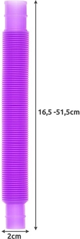 Šiuos vamzdelius galima ne tik sujungti – jie taip pat išsiplečia, o išskleidžiant ir suskleidžiant skleidžia malonų garsą. Tai paverčia juos tobulais žaislais įtampai mažinti ir žaismingam kūrybiškumui lavinti.