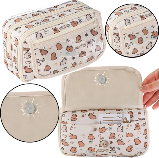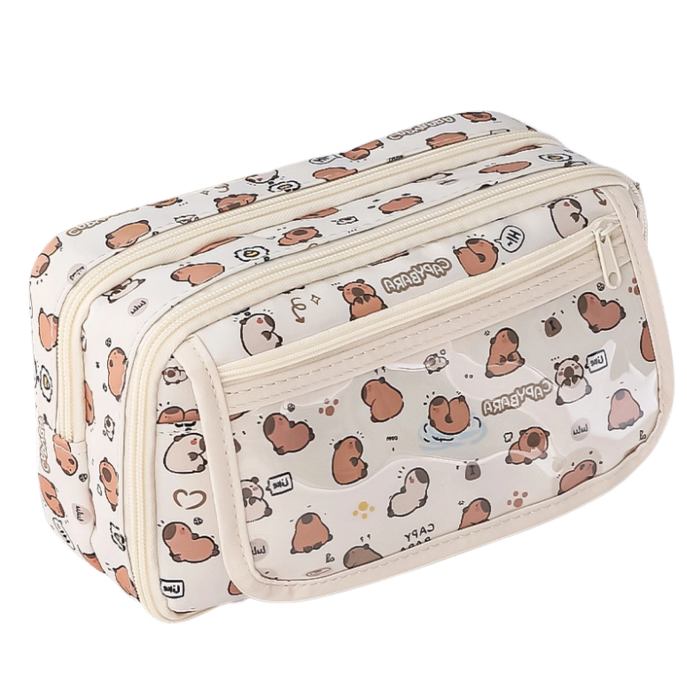 Didelis ir funkcionalus penalas su kapibarų motyvu – idealus pasirinkimas mokiniams, vertinantiems praktiškumą ir žaismingą dizainą. Kreminės spalvos su simpatiškų kapibarų atspaudu, penalas išsiskiria tarp kitų mokyklinių priemonių. Tinka mokyklai, universitetui, dailės pamokoms ar namų biurui.