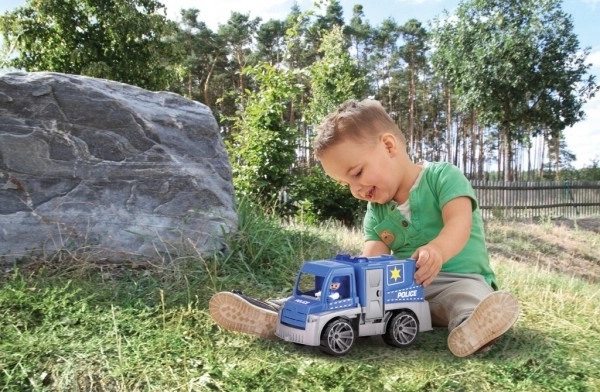 Atraskite patvarų policijos automobilį, kuris atlaikys nuotykius sode ir vaikų kambaryje. Dėl tvirtos konstrukcijos ir kokybiško plastiko jis idealiai tinka kasdieniam žaidimui. Realistiški elementai, tokie kaip atidaromos durys ir atkeliama kabina, skatina vaizduotę ir lavina smulkiąją motoriką.