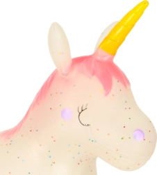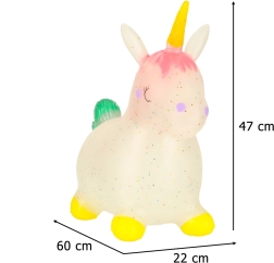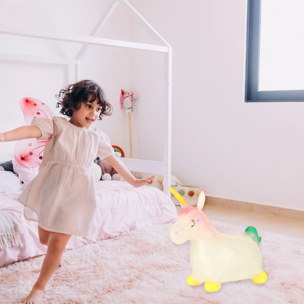 Pagamintas iš tamprios ir patvarios gumos, šokinėjantis vienaragis yra minkštas ir elastingas, su sertifikuotu saugumu.