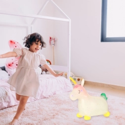 Dėl specialiai sukurto ergonomiško vienaragio formos dizaino vaikas gali patogiai sėdėti ir atsispirti kojomis nuo žemės.