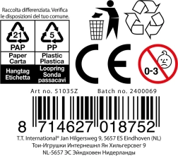 Tekstūruotas paviršius maloniai masažuoja delnus ir pirštus, taip lavina smulkiąją motoriką ir stiprina suėmimą. Ryškios spalvos skatina žaidimą ir gerą nuotaiką. Tereikia paimti į rankas ir leisti stresui ištirpti.