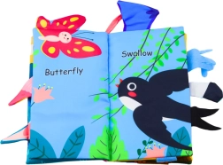 Kiekviename knygelės puslapyje pavaizduotas spalvingas paukštelis su iš skirtingų medžiagų pagaminta uodega, kas skatina lytėjimo pojūčių raidą ir judesių koordinaciją. Knygelėje yra paslėptas cyptukas, kuris žadina vaiko smalsumą ir suteikia klausos dirgiklių. Taip pat yra šiugždančių elementų, dėl kurių žaidimas tampa dar įdomesnis.