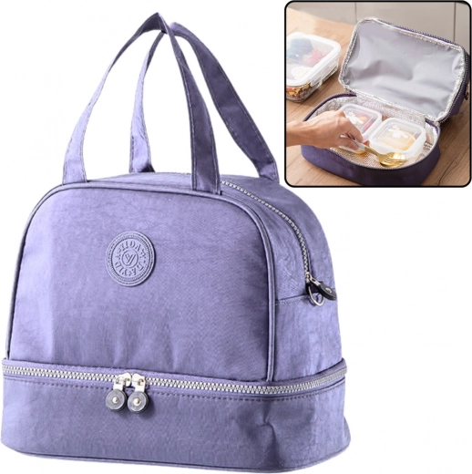 Dėl dvisluoksnės konstrukcijos ir izoliuoto terminio sluoksnio krepšys veiksmingai palaiko laikomų produktų temperatūrą – tiek karšto maisto, tiek šaltų gėrimų ir užkandžių. Pagrindinė apatinė kamera yra erdvi ir lengvai talpina pietų dėžutes, vaisius, gėrimus, butelius ar termopuodelius. Viršutinė kišenė skirta smulkmenoms, tokioms kaip batonėliai, jogurtai, servetėlės ar stalo įrankiai, todėl turinį lengva tvarkingai sutvarkyti ir pasiekti.