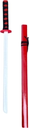Pakuotės turinys: medinė katana 70 cm ir makštis.