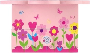 Žavinga medinė rožinės spalvos papuošalų dėžutė pradžiugins kiekvieną mažą pasakų mylėtoją. Gėlės formos dangtelyje paslėptas veidrodėlis, o atidarius įsijungia muzikinis mechanizmas, paverčiantis kiekvieną pasipuošimą magišku ritualu. Vidinė struktūra su skyreliais ir apatinis stalčiukas padeda palaikyti tvarką žiedeliuose, apyrankėse, karoliukuose ir smulkiuose lobiuose.