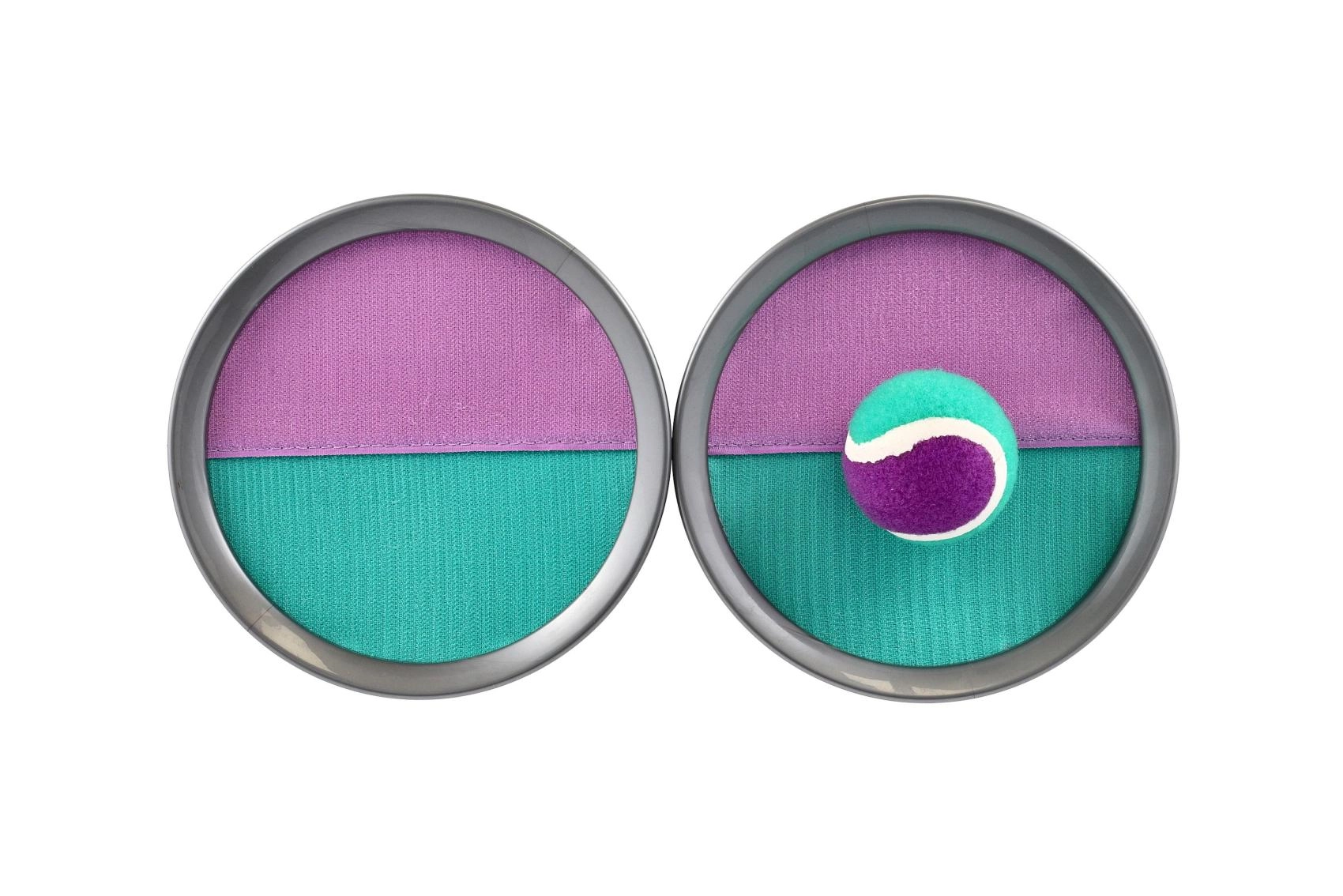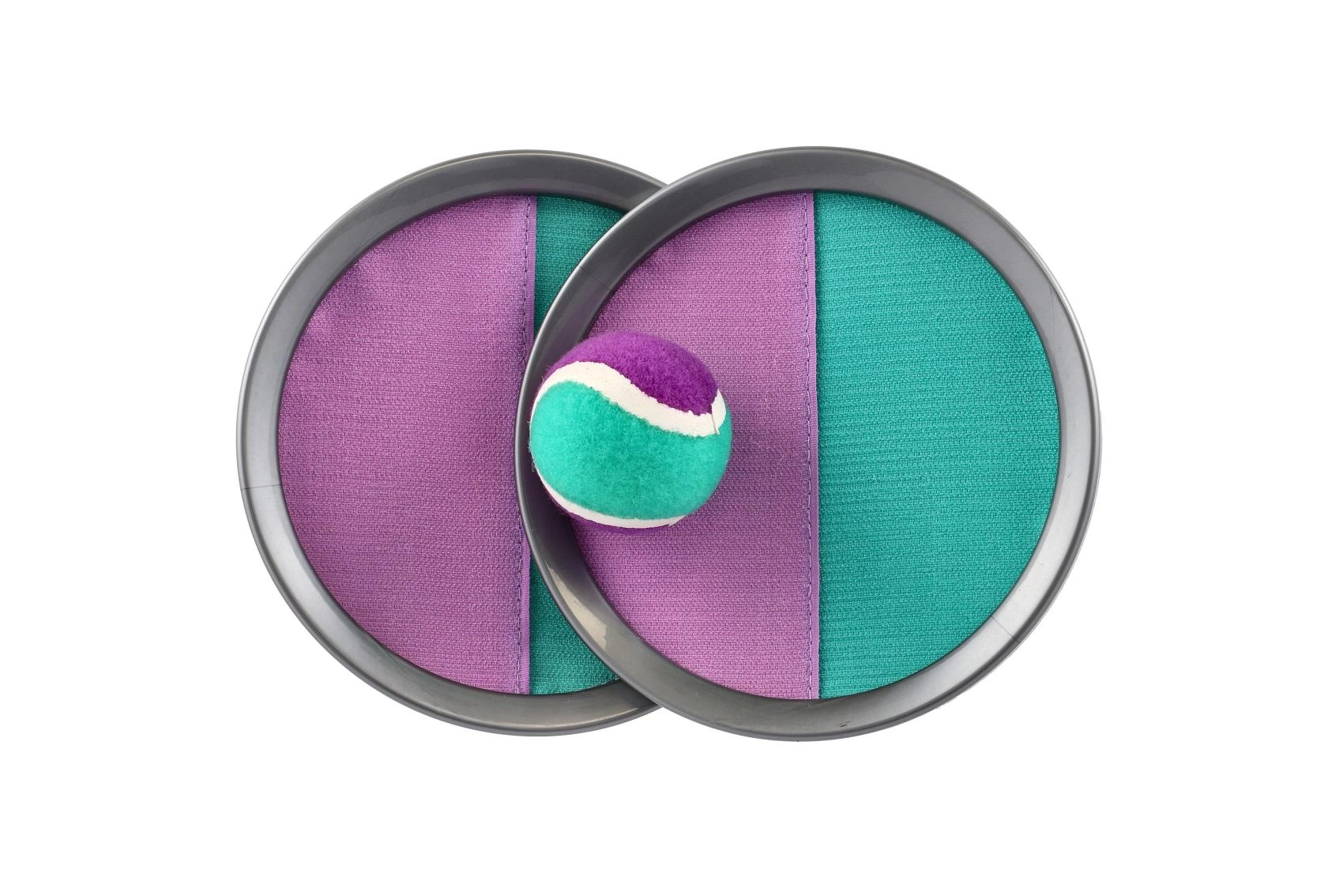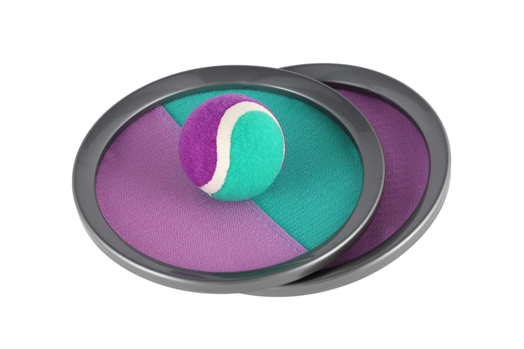 Mėgaukitės aktyviu laisvalaikiu lauke su klasika, kuri patinka ir vaikams, ir suaugusiesiems. Šiame rinkinyje rasite 2 gaudymo lėkštes su lipniu velcro ir lengvą kamuoliuką, kuris patikimai laikosi ant paviršiaus. Dėl 19 cm skersmens, lengvo gaudymo ir lengvos konstrukcijos žaidimas puikiai tinka parke, sode ar paplūdimyje. Šiuolaikiškas žalia–violetinė dizainas traukia akį iš pirmo žvilgsnio.