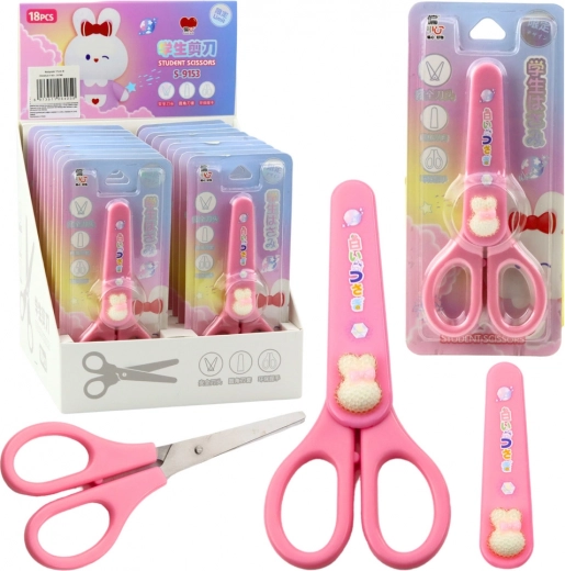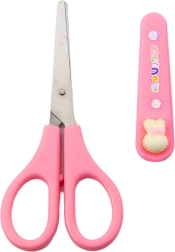 Mokyklinės žirklės turi dekoratyvinį apsauginį dėklą, kuris apsaugo ašmenis nuo pažeidimų ir leidžia saugiai laikyti penalėje ar kuprinėje. Dekoratyvus dizainas su kaspinėliu ir pastelinė rožinė spalva paverčia žirkles smagia ir patrauklia priemone.