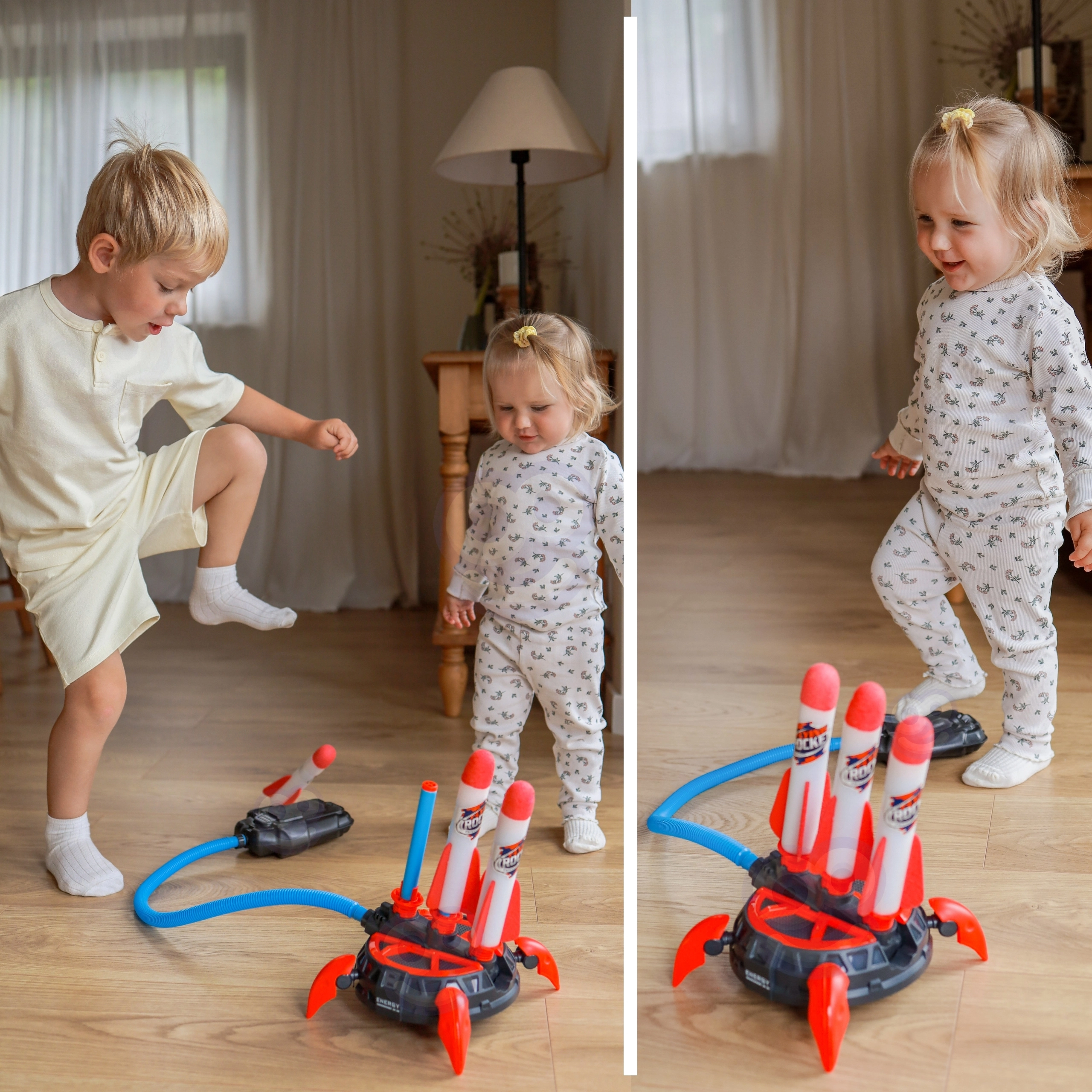 Ši daugiafunkcė putų raketinė šaudykla vaikams nuo 6 metų suteikia daug judesio, džiaugsmo ir pažinimo. Tereikia užminti ant pompos ir minkštos putų raketos saugiai šaus aukštyn. Stabili bazė talpina kelias raketas vienu metu ir užtikrina lengvą bei greitą paleidimą.