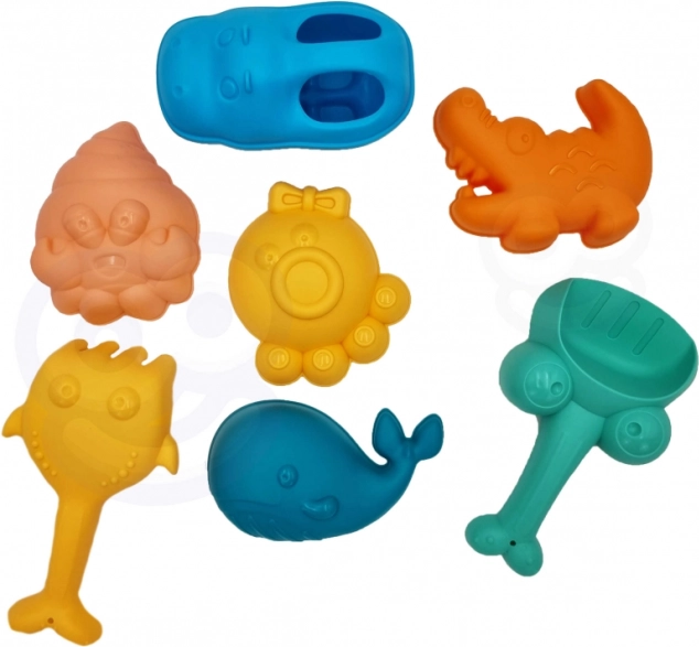 Smėlio rinkinys vaikams – semtuvėliai, grėbliai ir formelės, 28 dalys