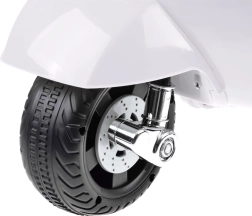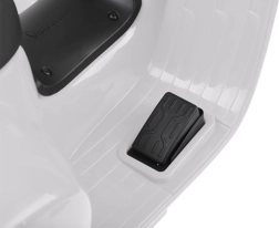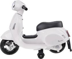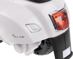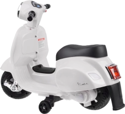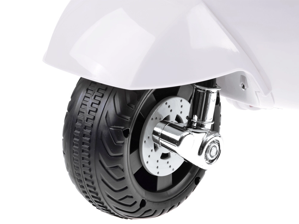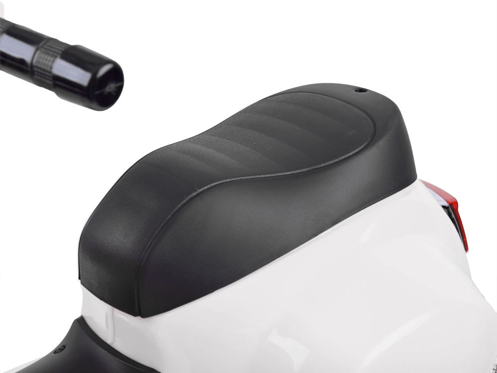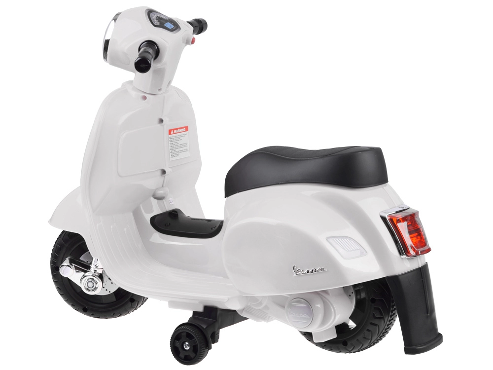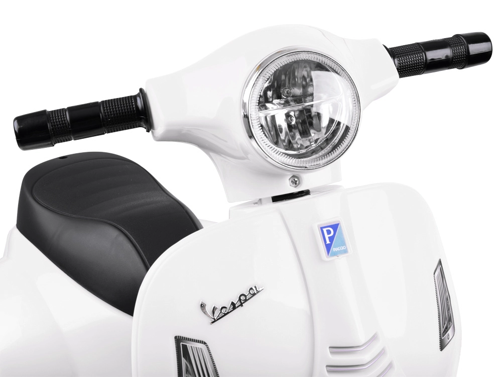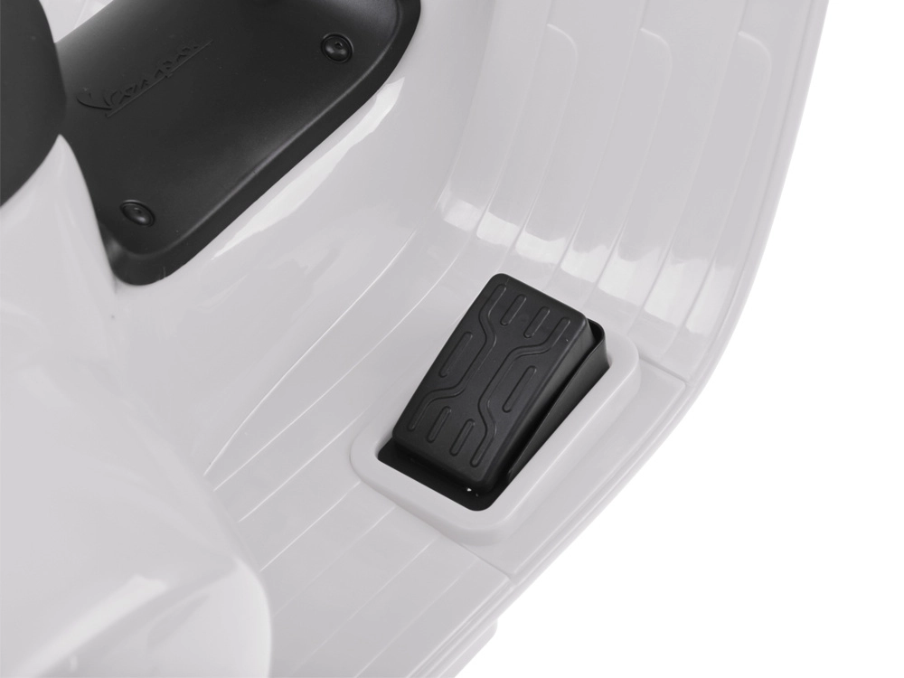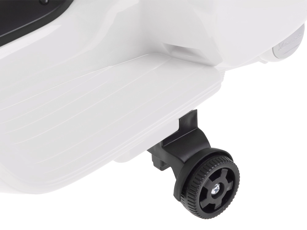 Šis vaikiškas elektrinis skuteris su VESPA dizainu pradžiugins kiekvieną mažą vairuotoją. Kompaktiški matmenys tinka butui ir pasivaikščiojimams parke, o pagalbiniai šoniniai ratukai užtikrina stabilumą per pirmuosius važiavimus. Realistiški elementai, tokie kaip priekinis žibintas, prietaisų skydelis (lipdukai) ir garsinis signalas ant vairo, suteikia dar daugiau autentiškos patirties.