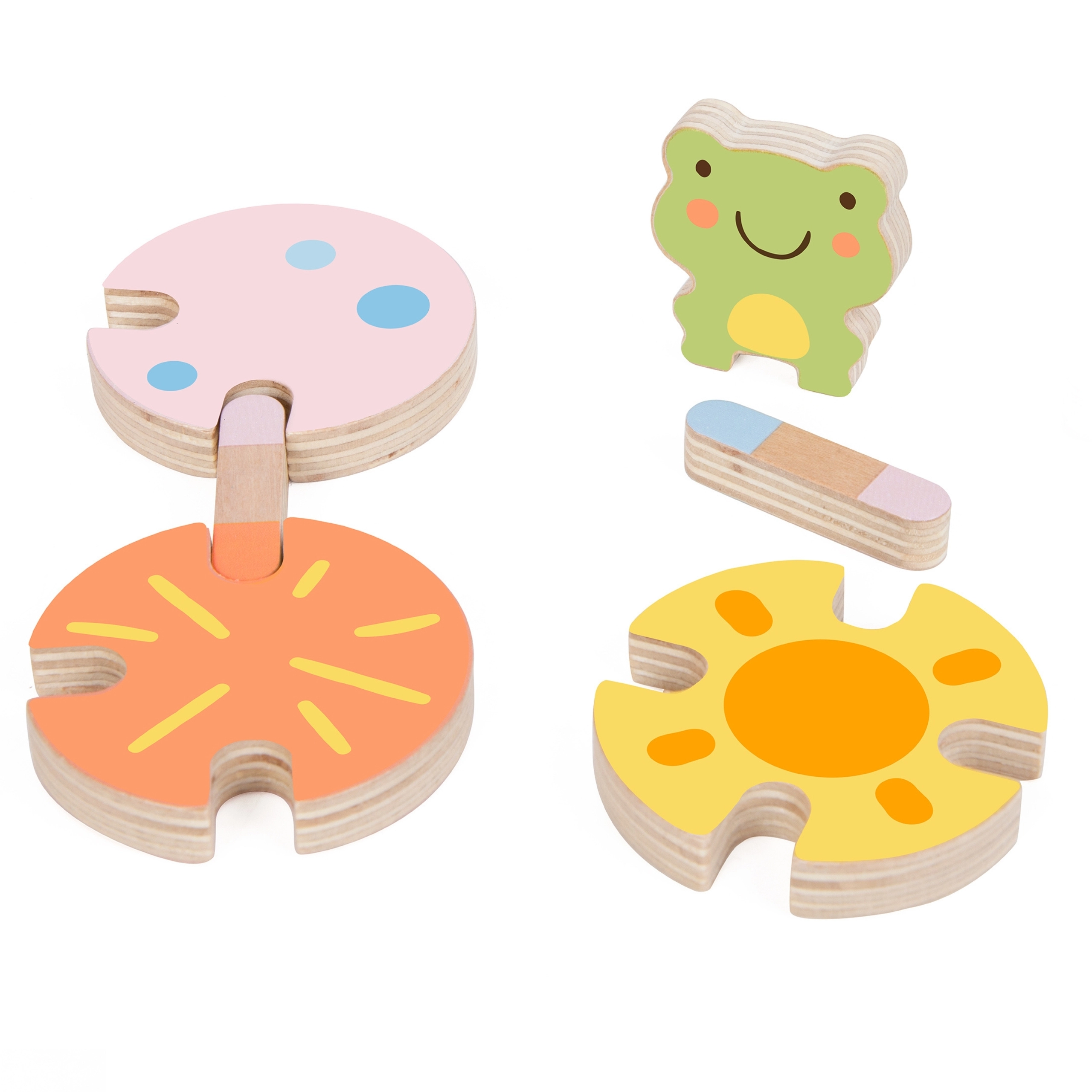 Ryški medinė varlytė ir švelnūs pastelinių atspalvių tonai suteikia žaidimui estetinę vertę ir padeda atpažinti spalvas.