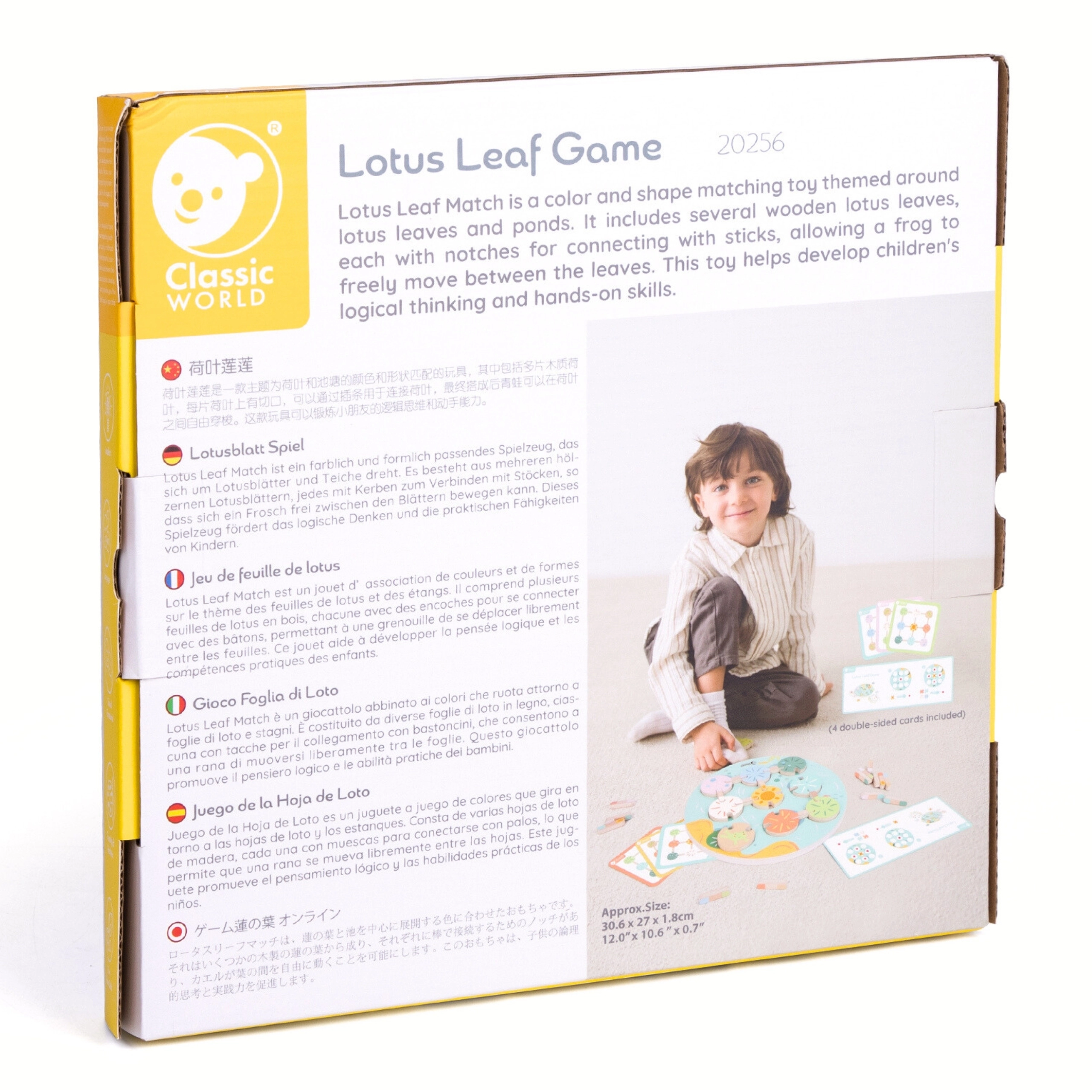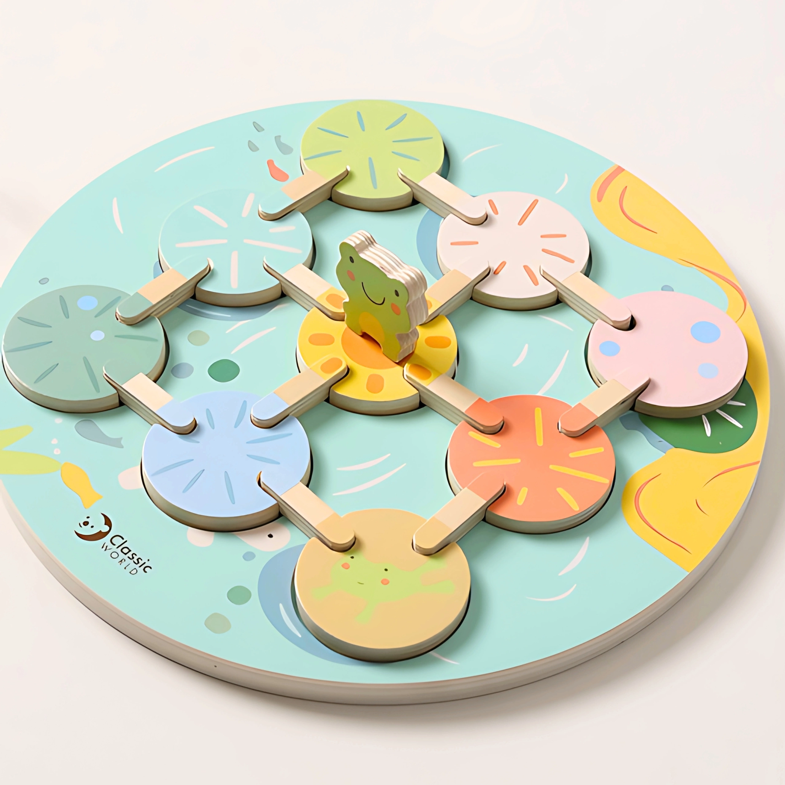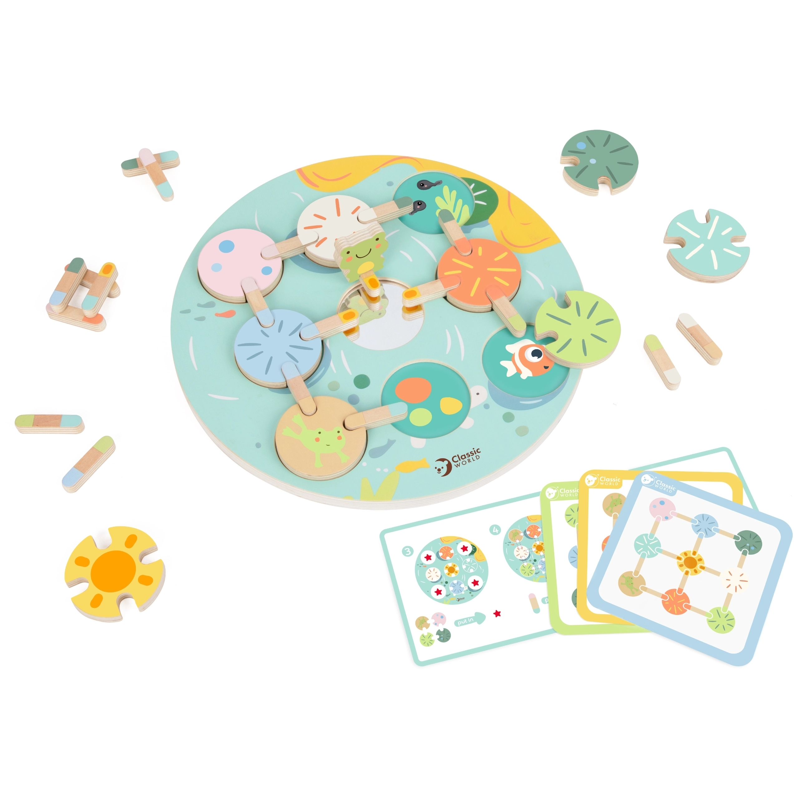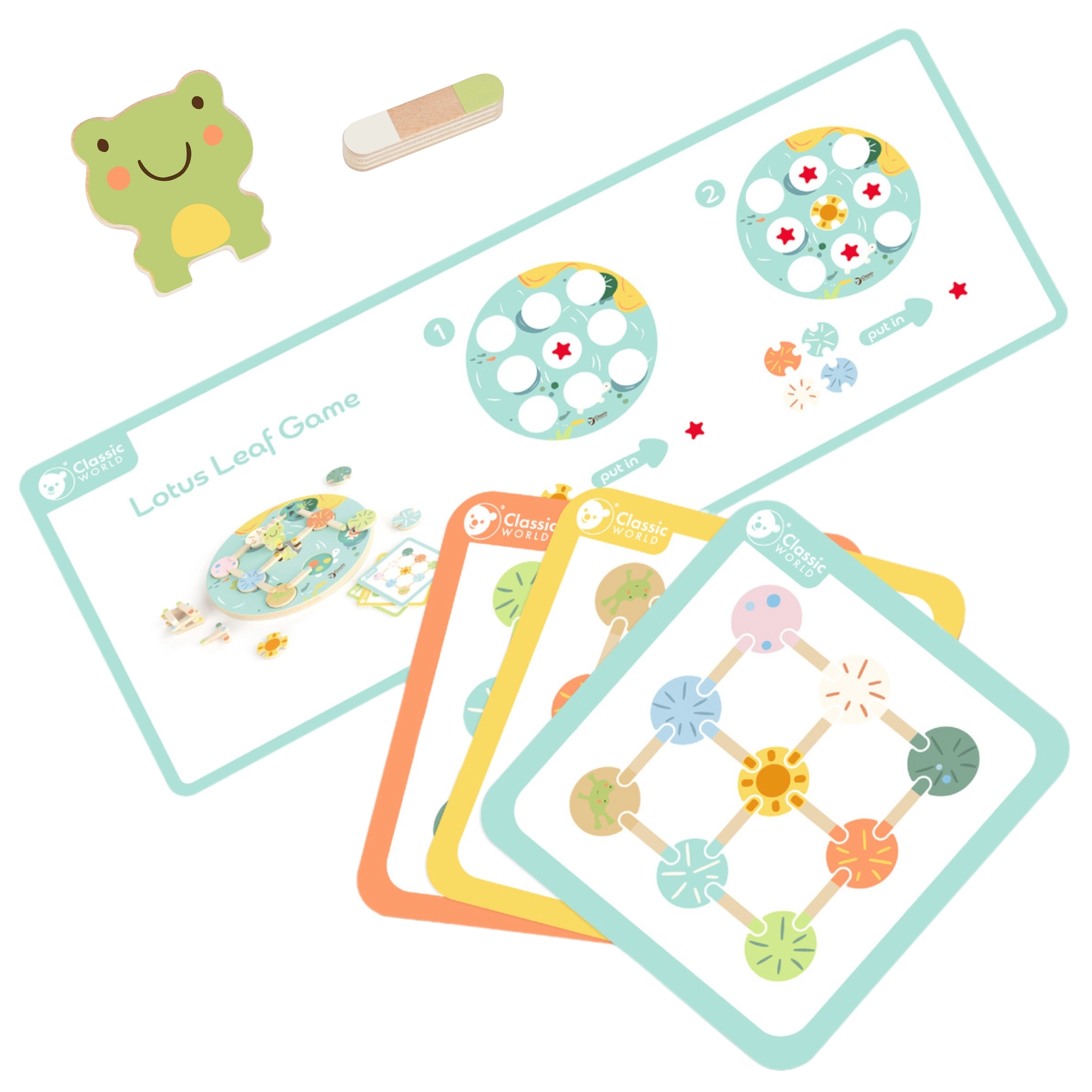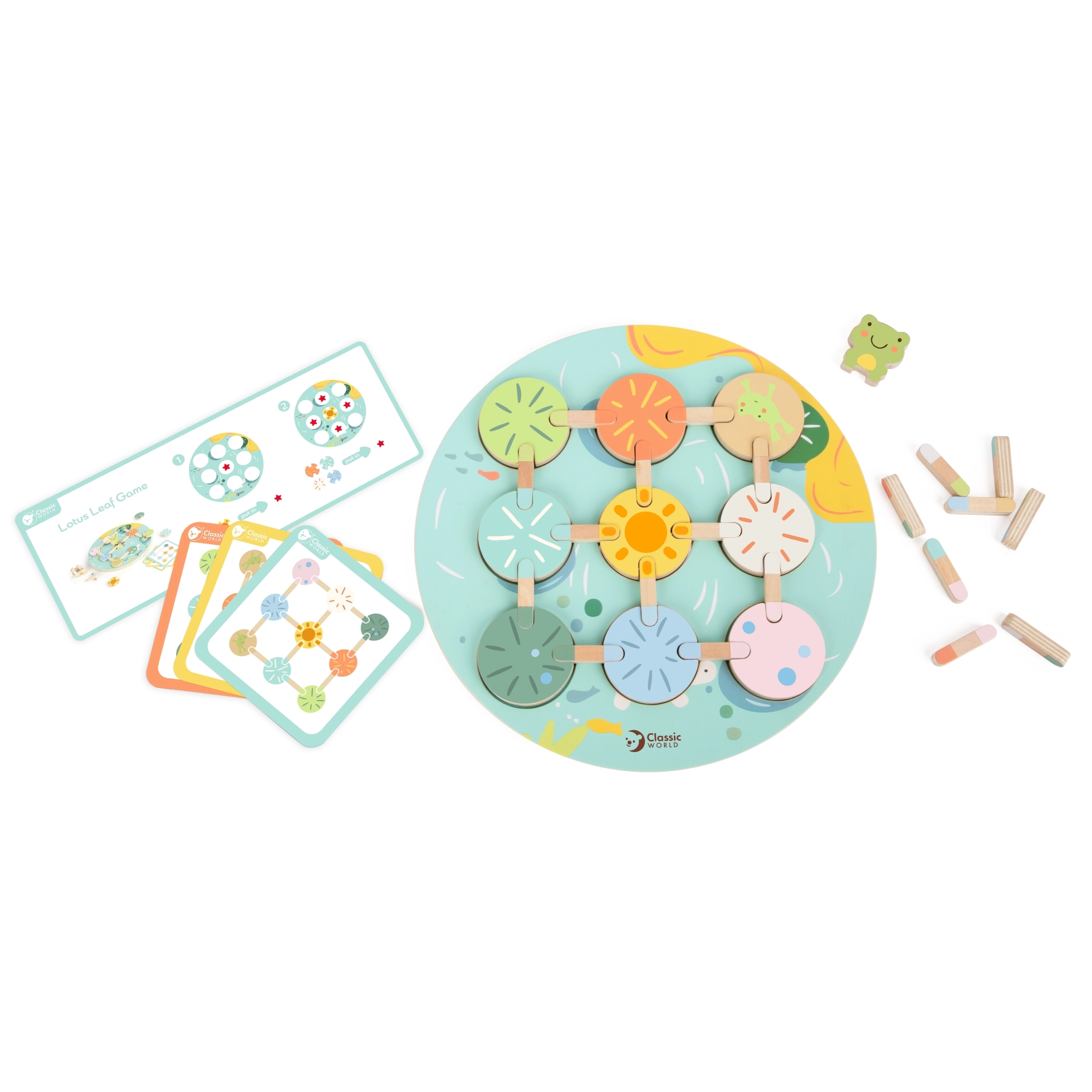 Atraskite nuostabų gamtos ir tvenkinių pasaulį su edukaciniu žaidimu „Lotoso lapai“ iš Classic World! Šis unikalus medinis žaidimas skatina atpažinti spalvas ir formas, lavina vaikų kūrybiškumą ir loginį mąstymą.