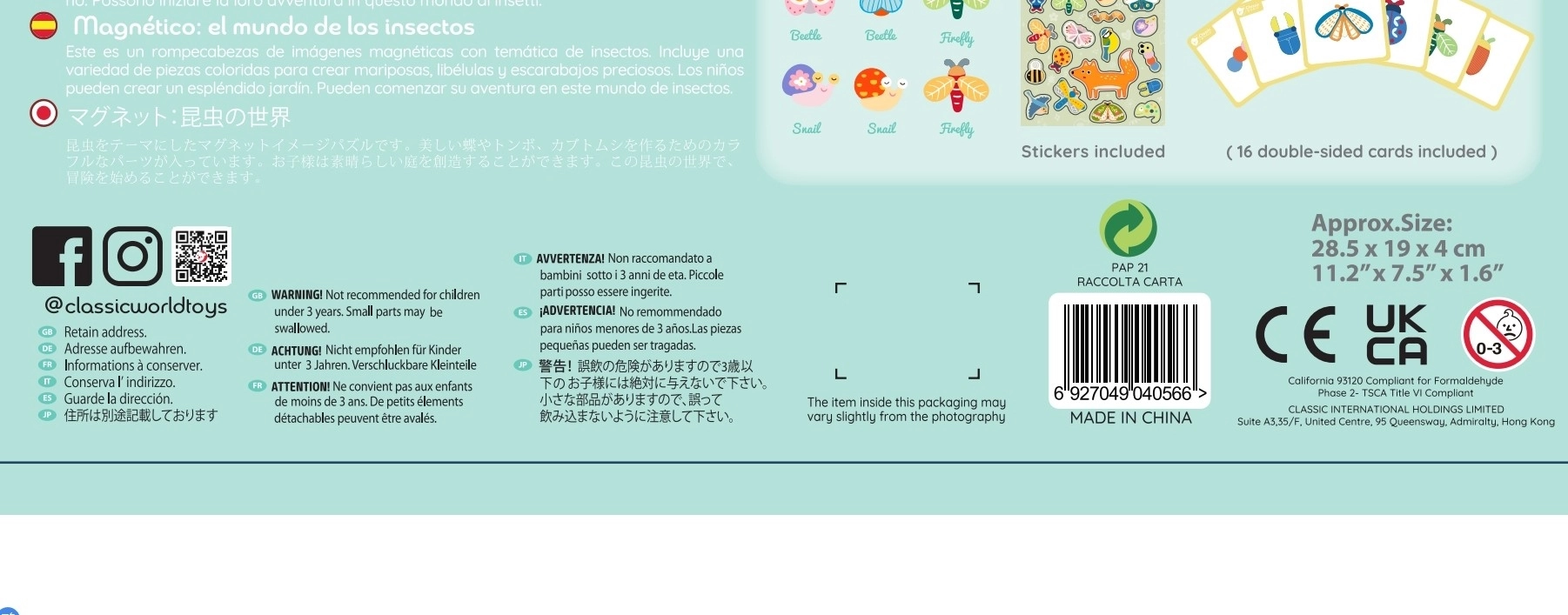 Išbandykite unikalų CLASSIC WORLD magnetinį puzzle rinkinį, kuriame yra 66 elementai. Šis rinkinys leidžia vaikams kurti įvairias istorijas naudojant gyvūnėlius ant specialių magnetinių lentų. Tai puikus būdas leisti laiką patalpose ir kartu mokytis naujų dalykų.