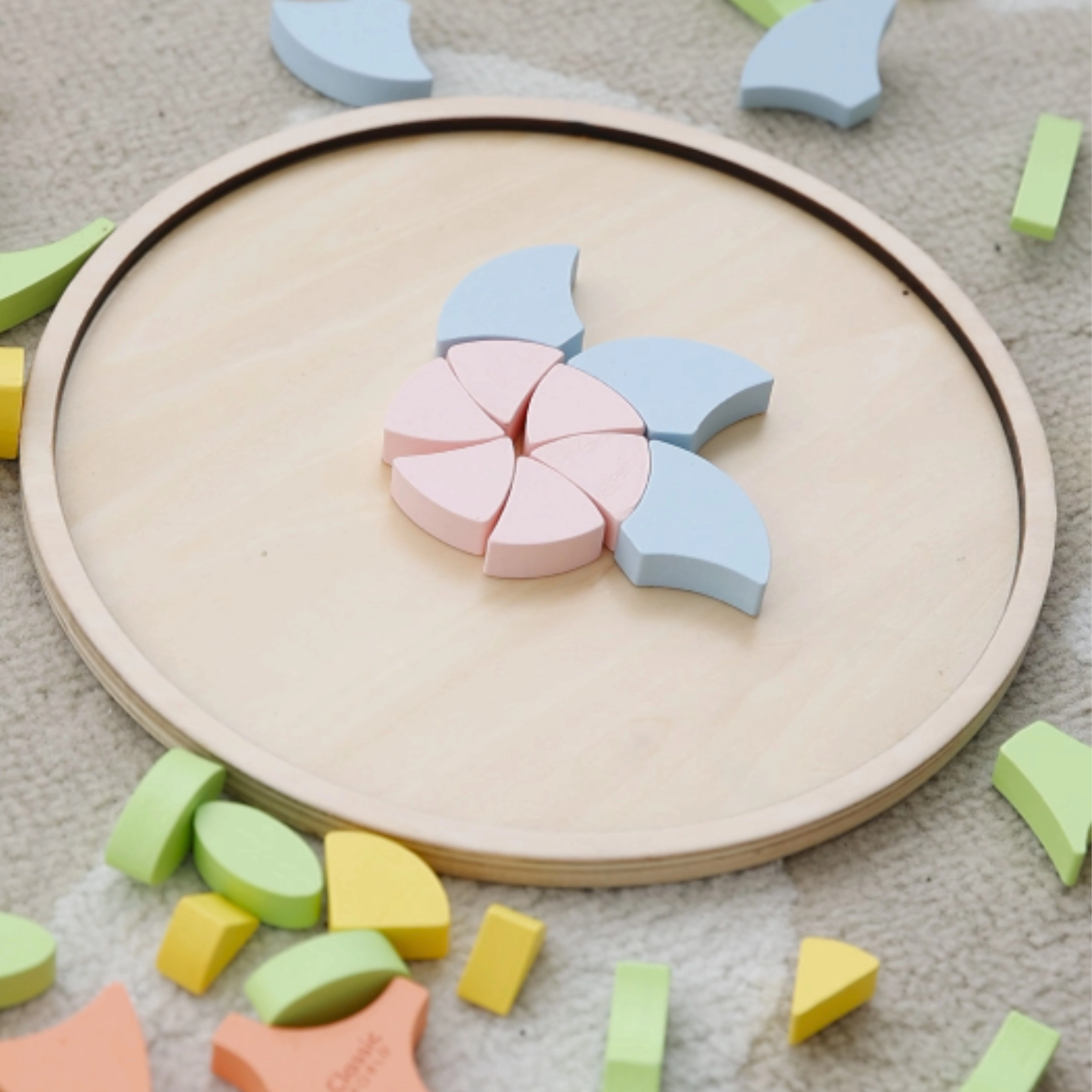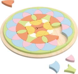 Ši medinė dėlionė leidžia vaikams kurti neribotą kiekį raštų – tiek pagal pavyzdžius, tiek pasitelkiant savo fantaziją. Puikiai tinka savarankiškam žaidimui arba bendrai kūrybai su draugais ar suaugusiaisiais.