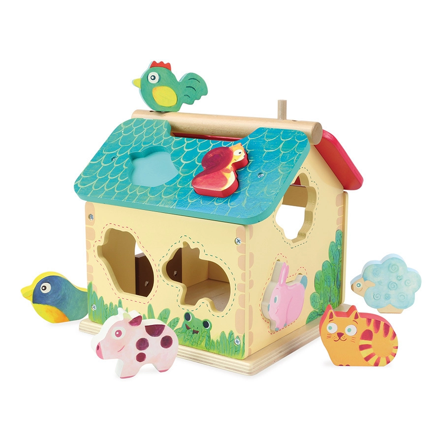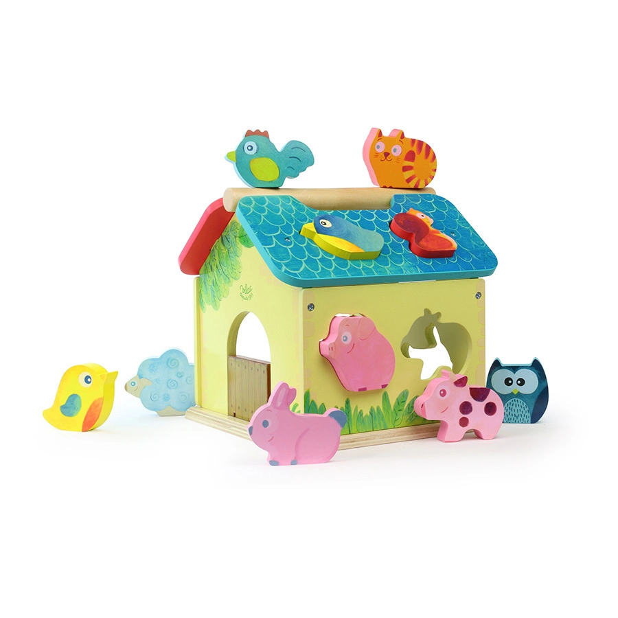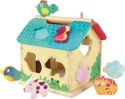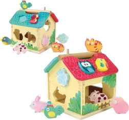 Šis spalvingas dėliojamas namelis puikiai lavina pagrindinius įgūdžius: vaikai treniruoja akies–rankės koordinaciją, loginį mąstymą ir kantrybę. Rinkinyje yra 1 namelis ir 10 medinių gyvūnėlių – tobula kombinacija prasmingam ir džiaugsmingam žaidimui.