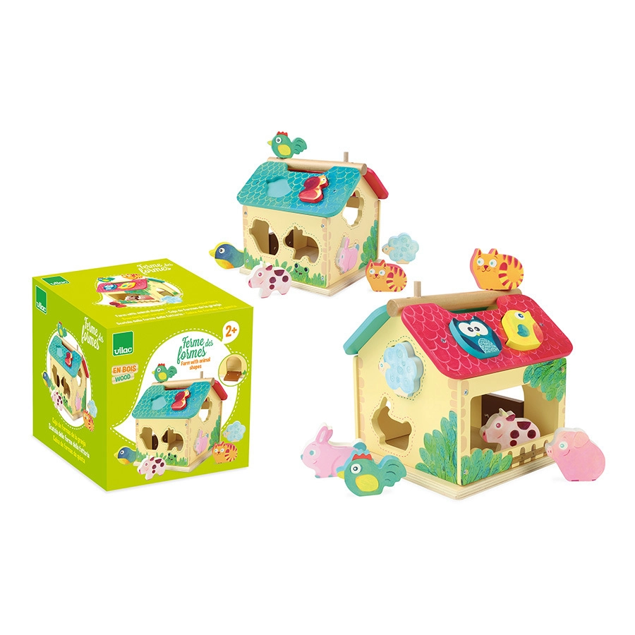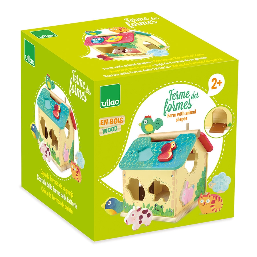 Medinis VILAC ūkis suteikia linksmą gyvūnėlių dėliojimą į atitinkamų formų angas namelio sienose ir stoge. Dėl patogios rankenėlės žaislą lengva nešioti – jis puikiai tinka žaidimams namuose ir kelionėse. Patvari konstrukcija ir lygios briaunos užtikrina saugumą ir ilgaamžiškumą.