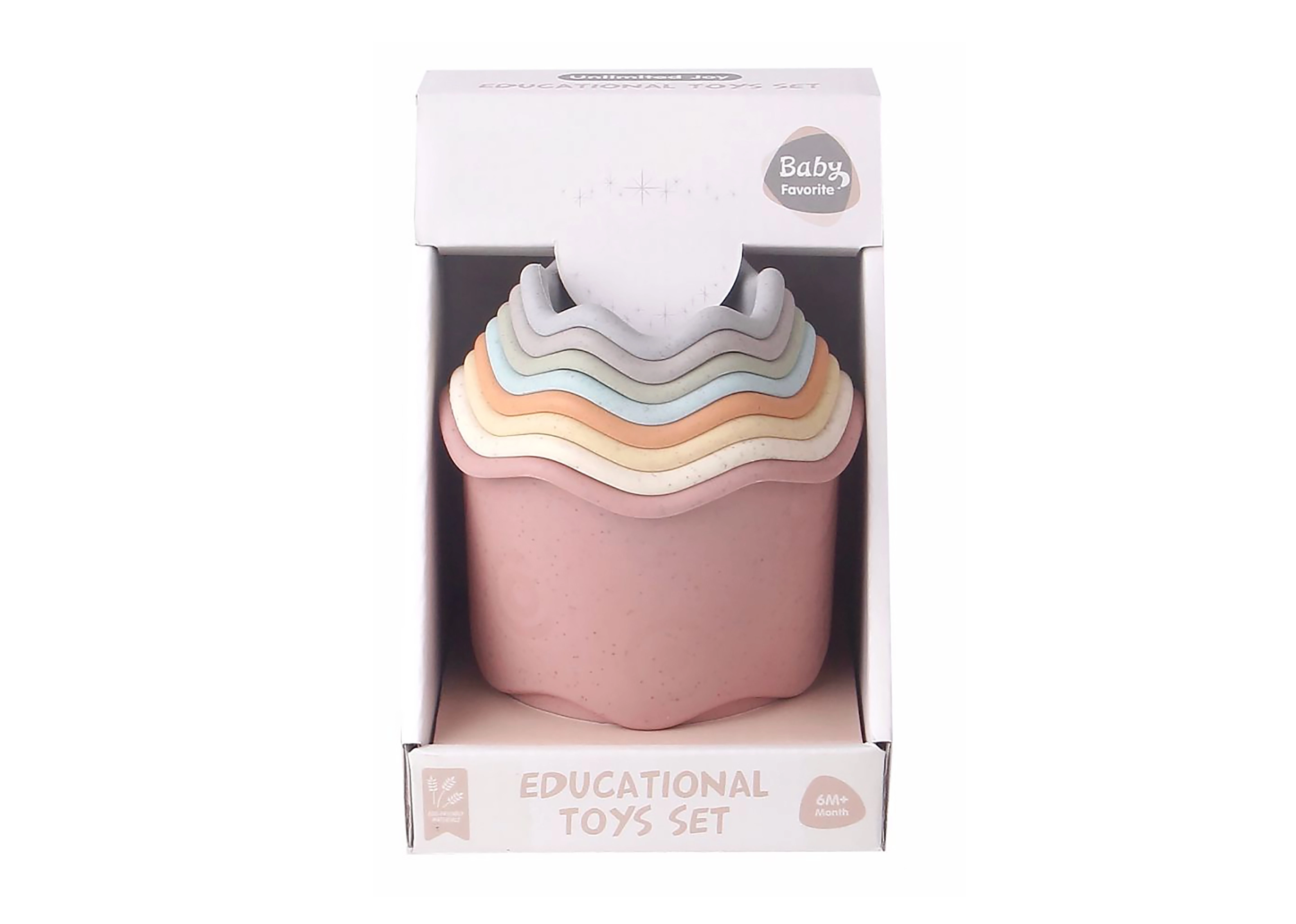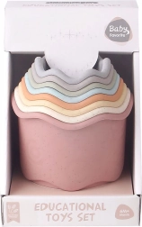 Mėgaukitės pramoga su spalvingu dėžučių bokštu, kuris sudomins kiekvieną vaiką. Rinkinyje yra 8 vnt. dėžučių su bangelių motyvais, o pastatytas bokštas siekia 40,8 cm aukštį.