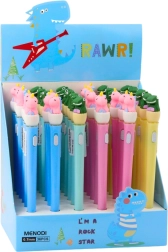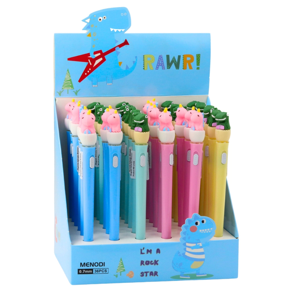 Viršutinę rašiklio dalį puošia guminė dinozauro figūrėlė, kuri veikia kaip dekoratyvinis elementas ir suteikia žavesio. Dėl dangtelio rašymo antgalis gerai apsaugotas nuo išdžiūvimo, o integruotas mygtukas įjungia įspūdingą LED apšvietimą, kuris įsižiebia kiekvieną kartą paspaudus.