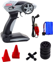 RC lenktyninė mašina aprūpinta LED žibintais – priekiniais, galiniais ir neoniniu važiuoklės apšvietimu, kuris suteikia modernią ir futuristinę išvaizdą. Dėl 2,4 GHz valdymo užtikrinama tiksli kontrolė iki 25 metrų atstumu. Turbo mygtukas leidžia greitai įsibėgėti. Rinkinyje taip pat yra atsarginės padangos, kūgeliai ir raktas jų keitimui, todėl galima kurti savo lenktynių trasas ir treniruotis manevrų.