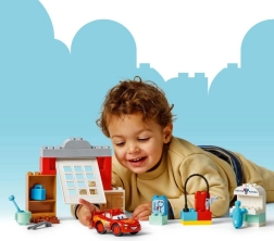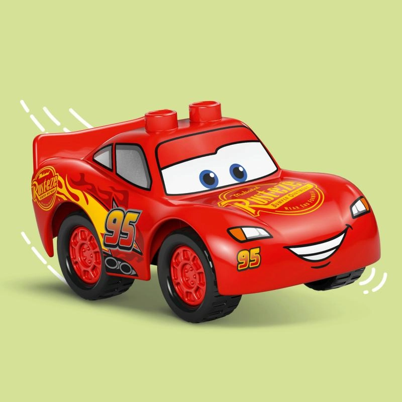 Pastatykite linksmą dirbtuves iš filmo Disney ir Pixar Ratai ir pasirūpinkite Žaibu McQueenu! Linksmas LEGO DUPLO rinkinys su 35 kaladėlėmis lavina smulkiąją motoriką, akių–rankų koordinaciją ir kūrybišką žaidimą dėl atidaromų durų, plovyklos su lanksčia žarna ir priedų, tokių kaip raktas ar spintelė.