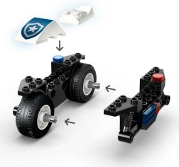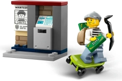 - Viskas dėžutėje – motociklas, riedlentė, bankomatas, policininko ir vagies minifigūrėlės.