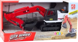 Šis vikšrinis ekskavatorius turi 360° besisukančią kabiną, kuri leidžia pilnai imituoti tikro statybinio automobilio darbą. Šoninė pavarėlė ant strėlės leidžia ranka valdyti judantį kaušą – idealu smėliui ar kaladėlėms semti.