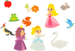 - 2 puslapis: Princesės stilizacija su nuimamais elementais.