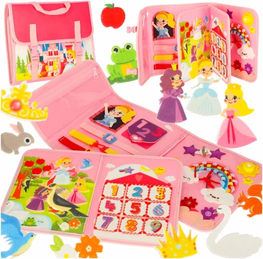 Ši rožinė Montessori pojūčių kuprinė – idealus palydovas kiekvienam smalsiam vaikui. Lagamino tipo konstrukcija siūlo įvairius interaktyvius elementus, lavinančius motorinius įgūdžius ir skatinančius susidomėjimą mokymusi. Šeši skirtingi puslapiai suteikia žaidimo ir sąveikos galimybių: