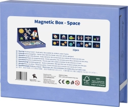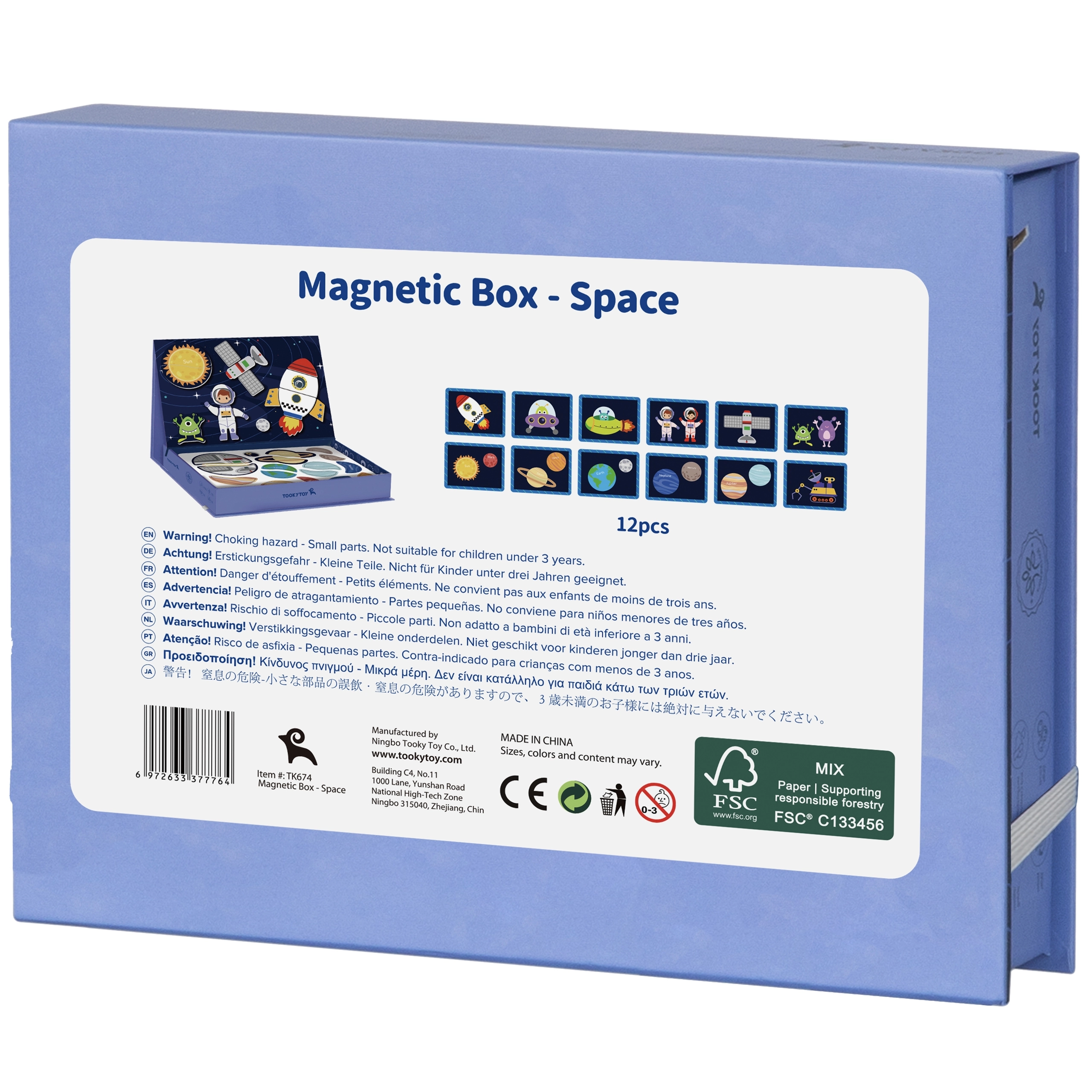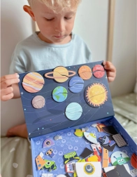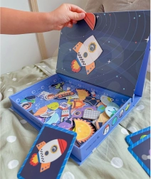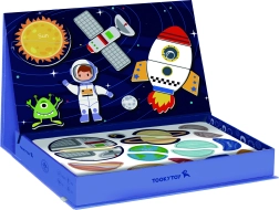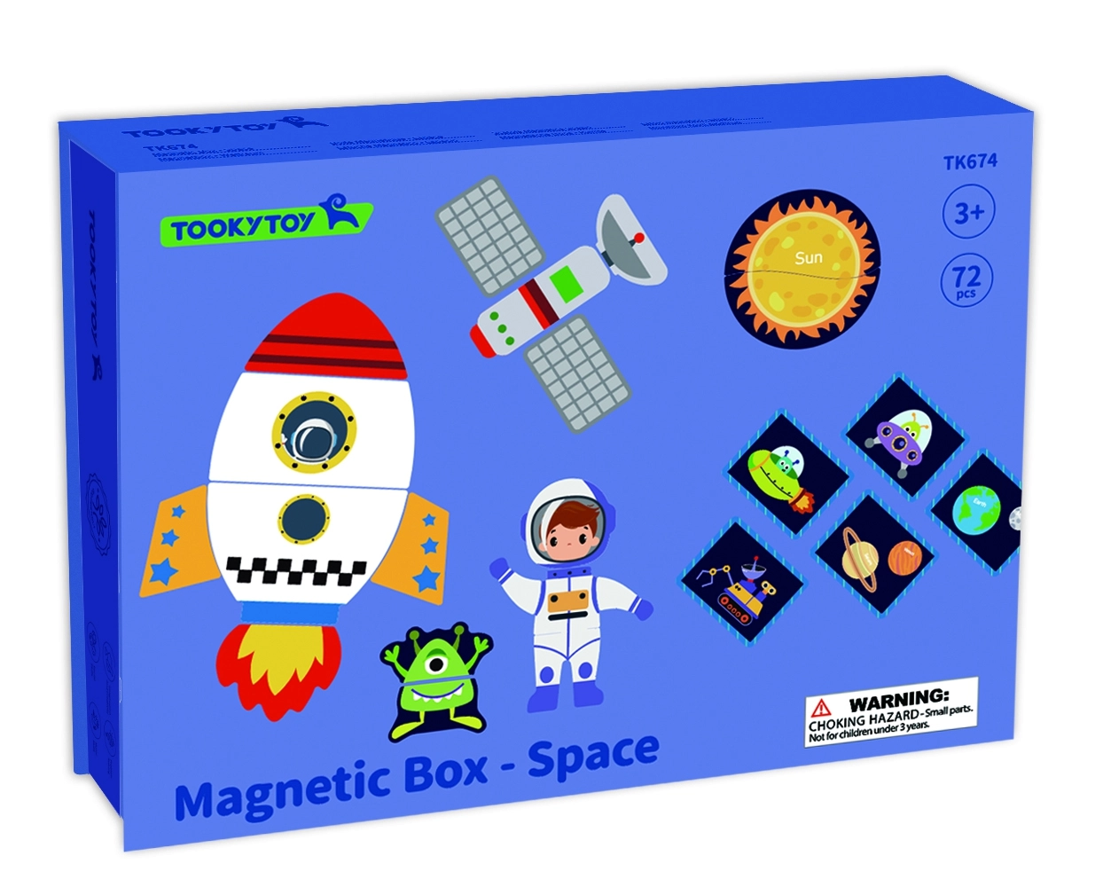 TOOKY TOY magnetinė dėlionė – tai žavingas edukacinis žaislas, vedantis vaikus per begalinius kosmoso pasaulius. Rinkinyje yra 12 skirtingų kosminių šablonų, kiekvienas suskirstytas į keturias–penkias magnetines dėlionės dalis. Dėl magnetinių lipdukų vaikai lengvai gali kurti savo kosmines scenas ant pridėtos magnetinės lentos.