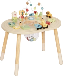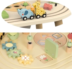 Šis žavus medinis staliukas patiems mažiausiems puikiai tinka atrasti spalvų, formų ir garsų pasaulį, kartu lavinant svarbiausius įgūdžius. Puikus pasirinkimas valandoms smagios veiklos, kur kiekvienas prisilietimas jūsų mažajam tyrinėtojui tampa sėkme.