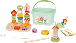 Medinė lavinamoji dėžutė Magic Garden atveria vaikams spalvingą lapų, gėlių ir žavių vabalėlių pasaulį. Ji skatina smulkiąją motoriką, loginį mąstymą ir kūrybiškumą dėl vėrimo, rūšiavimo ir raštų statymo pagal veiklų korteles derinio. Tvirtos medinės detalės pastelinių spalvų yra patogios laikyti ir kviečia žaisti vėl ir vėl.