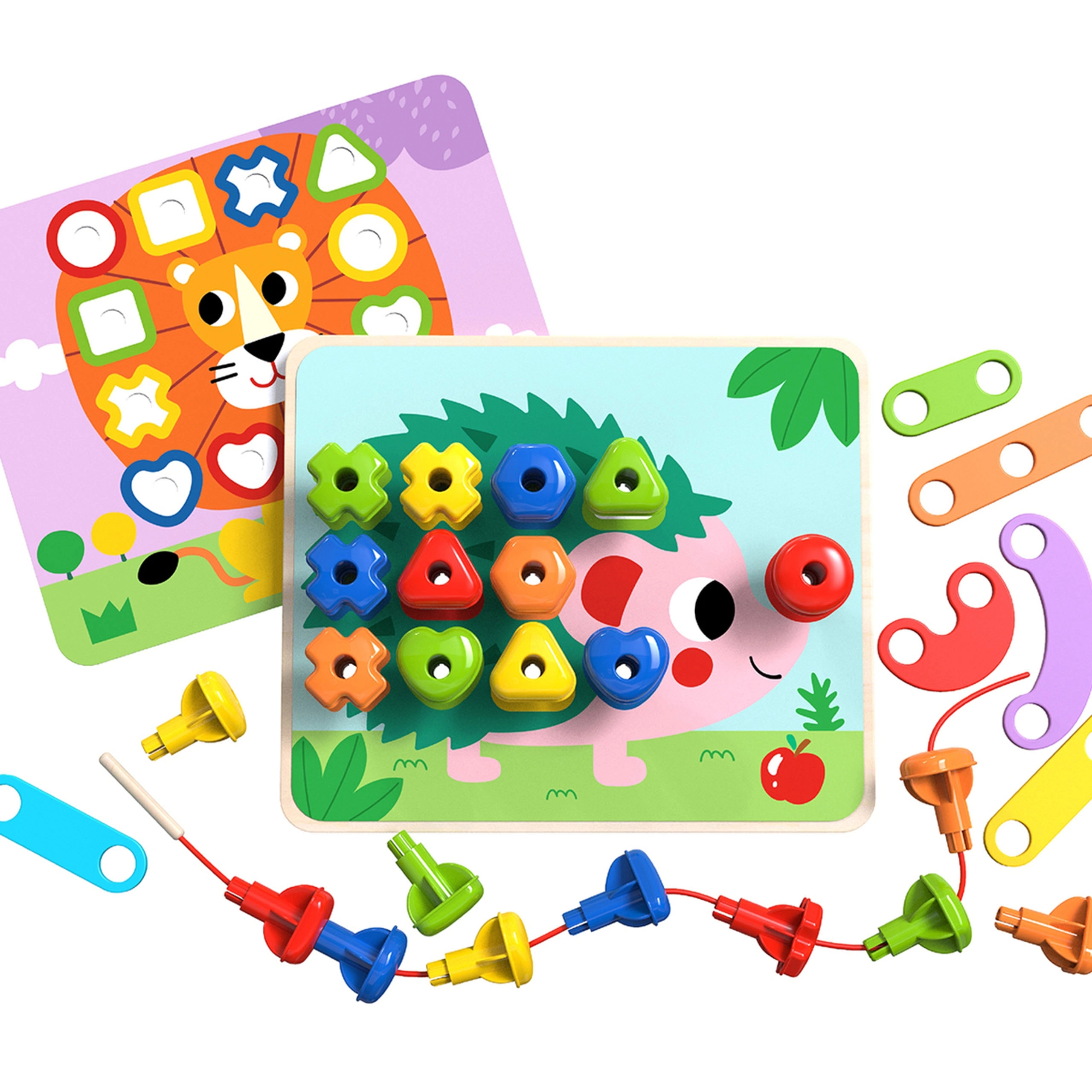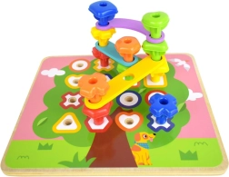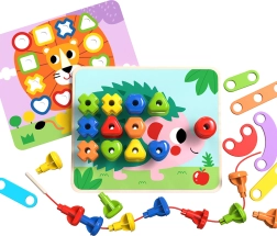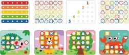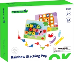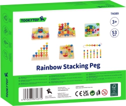 Šis daugiafunkcis rinkinys leidžia vaikams lavinti įvairius įgūdžius. Dėka spalvotų kaiščių galima kurti skirtingas formas ir mokytis atpažinti spalvas. Rinkinyje yra 30 skirtingų kaiščių, kurie skiriasi forma ir spalva, bei 8 kortelės su įvairiais simboliais. Vaikams, mėgstantiems kurti, pridedama ir medinė adata su virvele vėrimui.