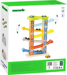 Medinis nusileidimo takas iš Tooky Toy – tai idealus žaislas, padedantis vaikams lavinti svarbius įgūdžius žaidžiant. Stebėkite, kaip automobiliukai nurieda žemyn, ir leiskitės į greičio bei linksmybių kupiną nuotykį.