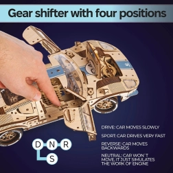 Ugears Endurance Racer – tai dviduris sportinis kupė, sukurtas automobilių entuziastams. Modelis pasižymi realistiškomis lenktyninėmis ypatybėmis, tokiomis kaip pavarų svirtis su į priekį, atgal ir sport režimais papildomam pagreičiui. Silikoninės padangos užtikrina puikų sukibimą ir stabilumą.
