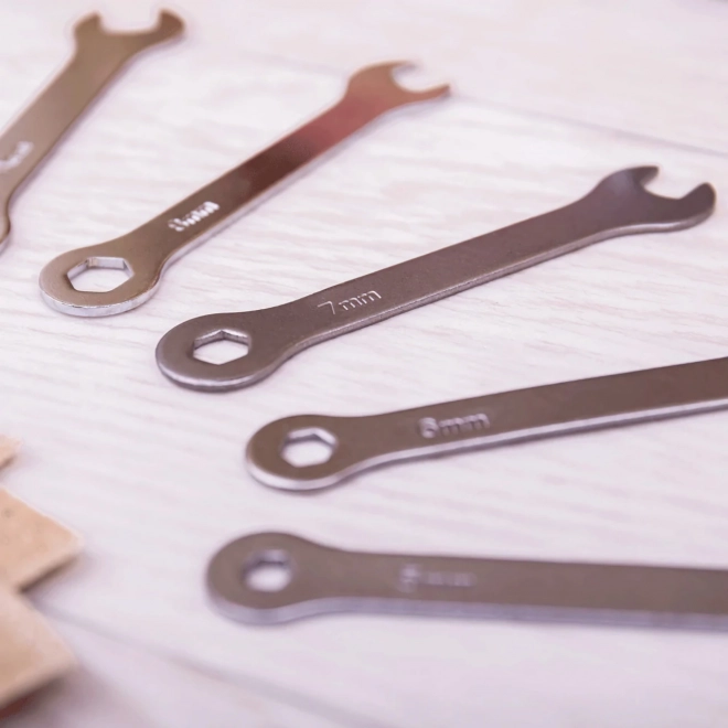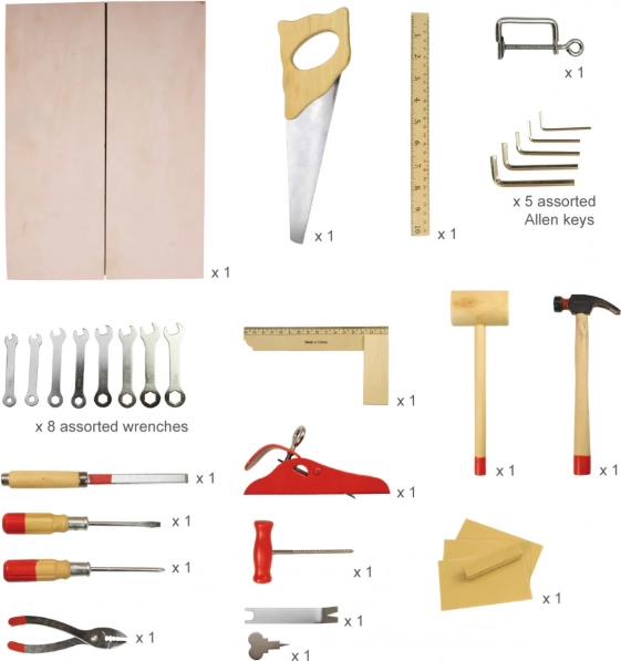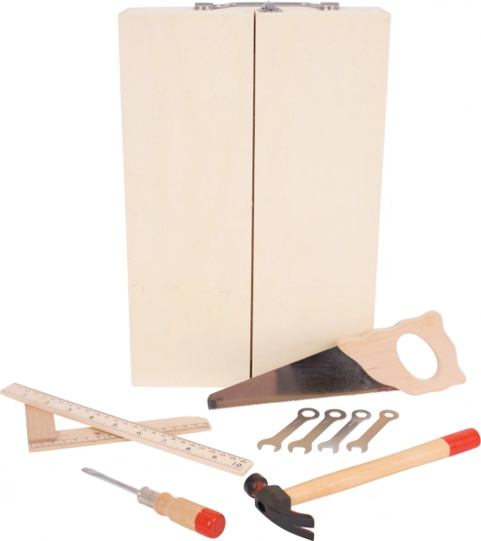 Suteikite savo vaikui kūrybos džiaugsmą su šiuo praktišku įrankių lagaminėliu. Kiekviena įrankio dalis kruopščiai pagaminta iš kokybiškos medienos ir metalo, kad atlaikytų smalsias mažojo meistro rankas.